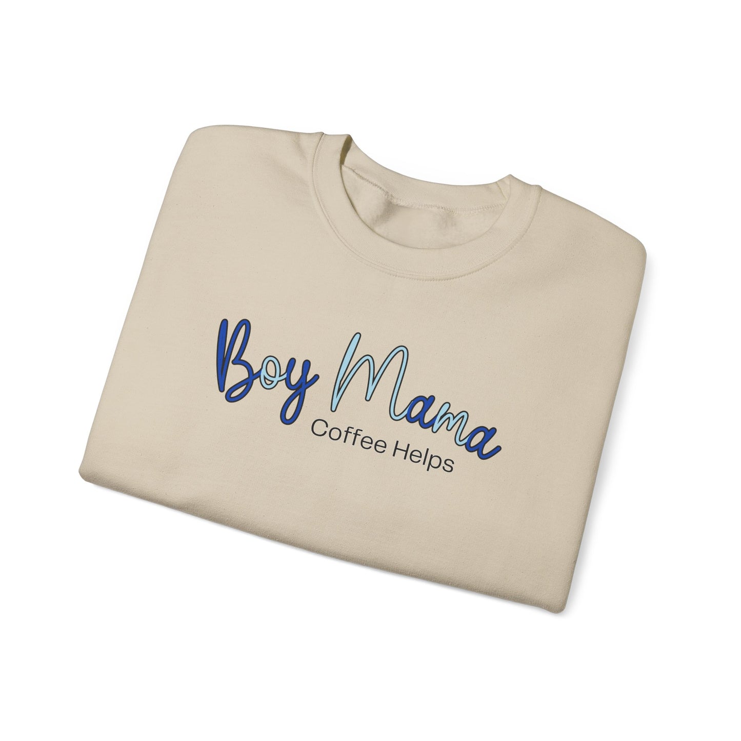 Because raising tiny tornadoes with sticky hands and zero chill takes stamina — and copious amounts of caffeine. This cozy “Boy Mama, Coffee Helps” sweatshirt is perfect for surviving wild mornings, epic messes, and spontaneous living room wrestling matches.Product features:
