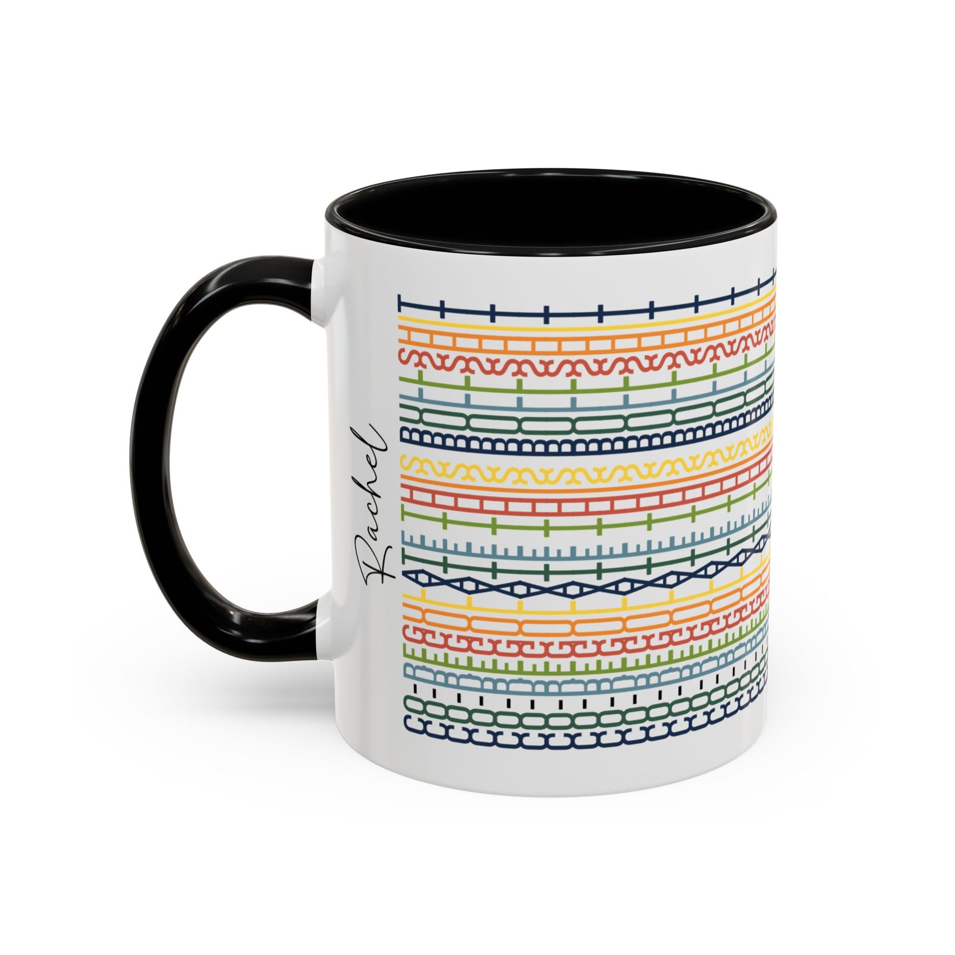 • Material: white ceramic with colored interior, rim and handle