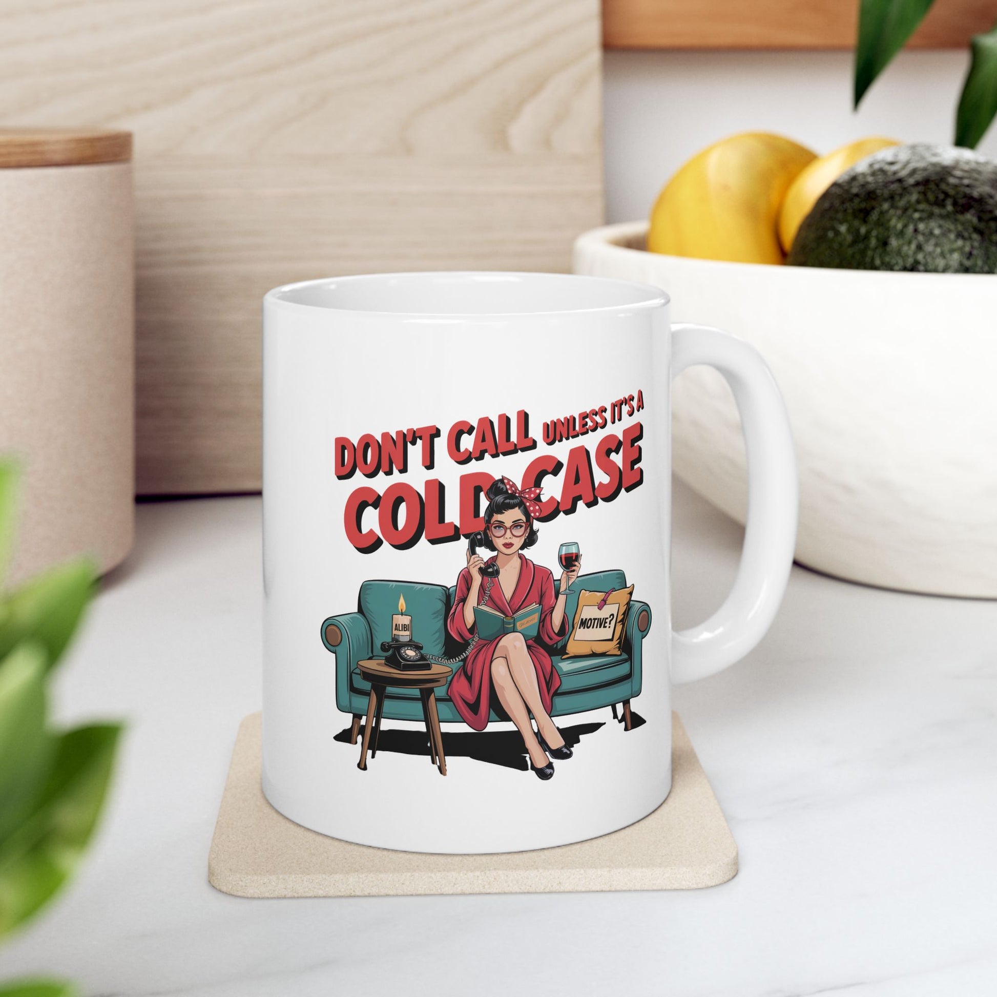 Obsessed with murder and mid-century vibes? This retro true crime mug brings vintage flair to your caffeine fix—perfect for crime junkies who love their coffee with a side of suspense. Use it for coffee, tea, wine... or as an alibi. An amazing gift for crime junkies, podcast lovers, and introverts with investigative instincts.