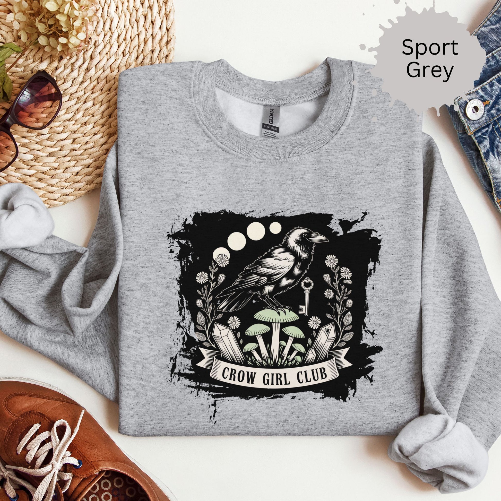 Welcome to the Crow Girl Club. If moody vibes, gothic art, and a touch of occult charm speak your language, this witchy crow sweatshirt deserves a front row in your fall lineup. Cozy, eye-catching, and secretly part of the coven.