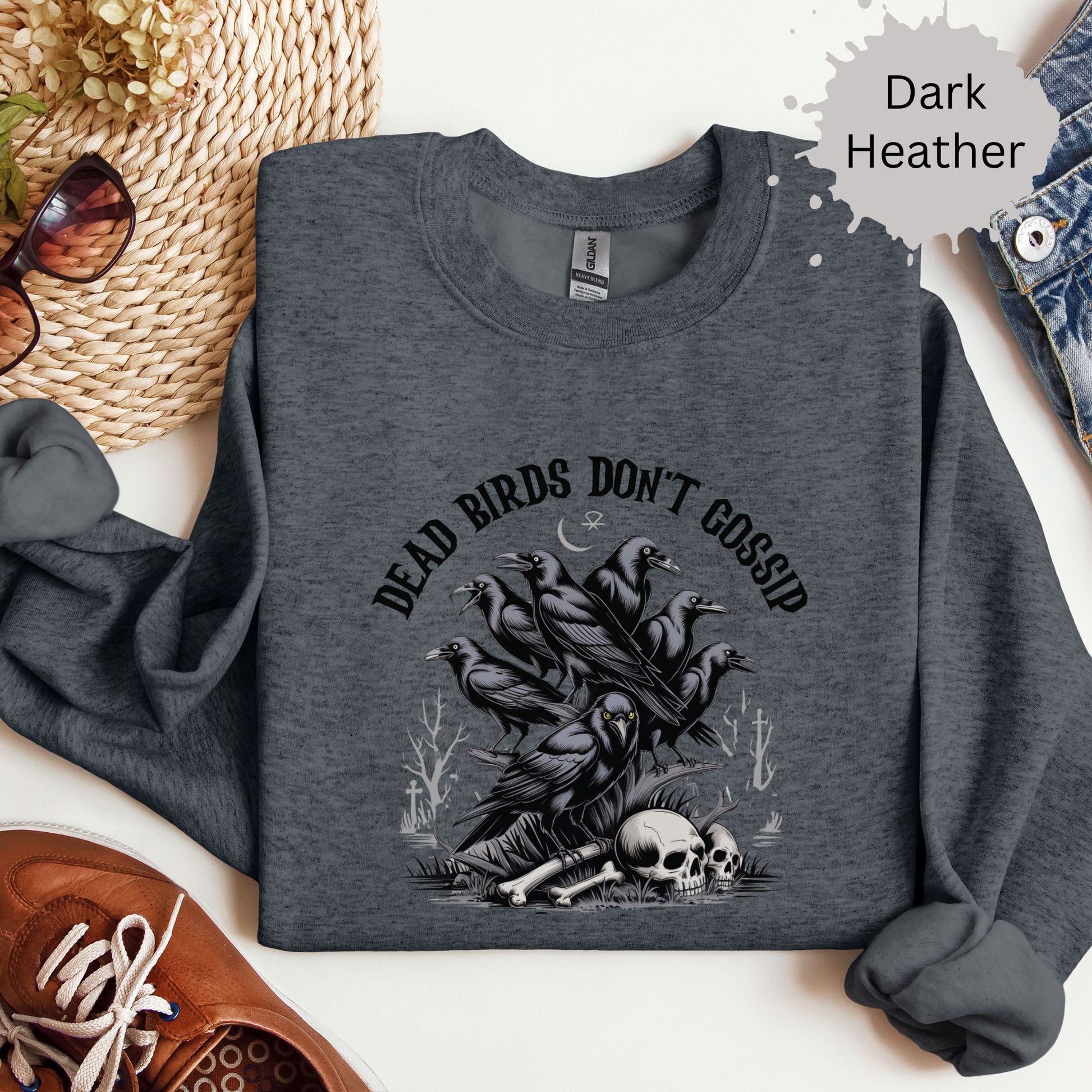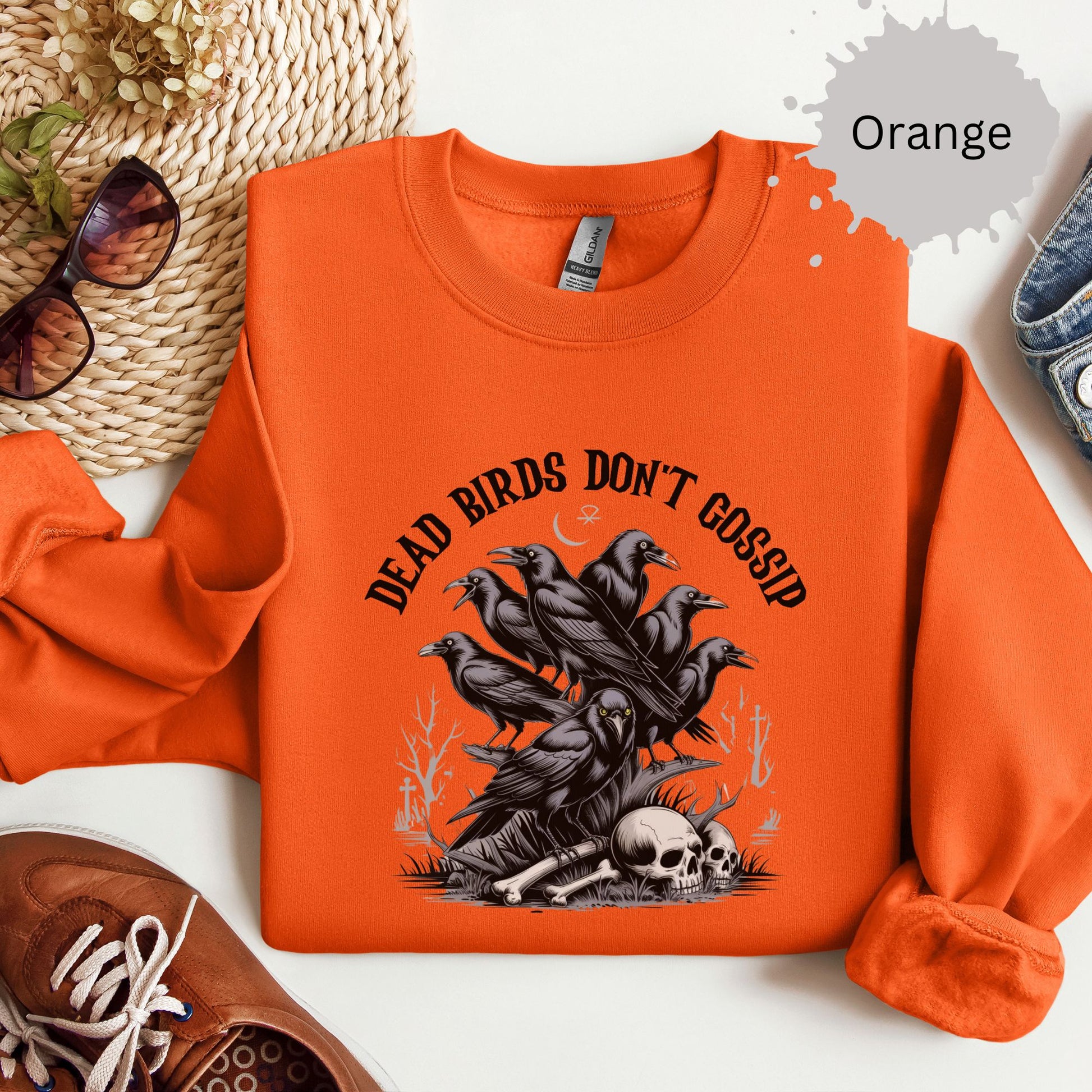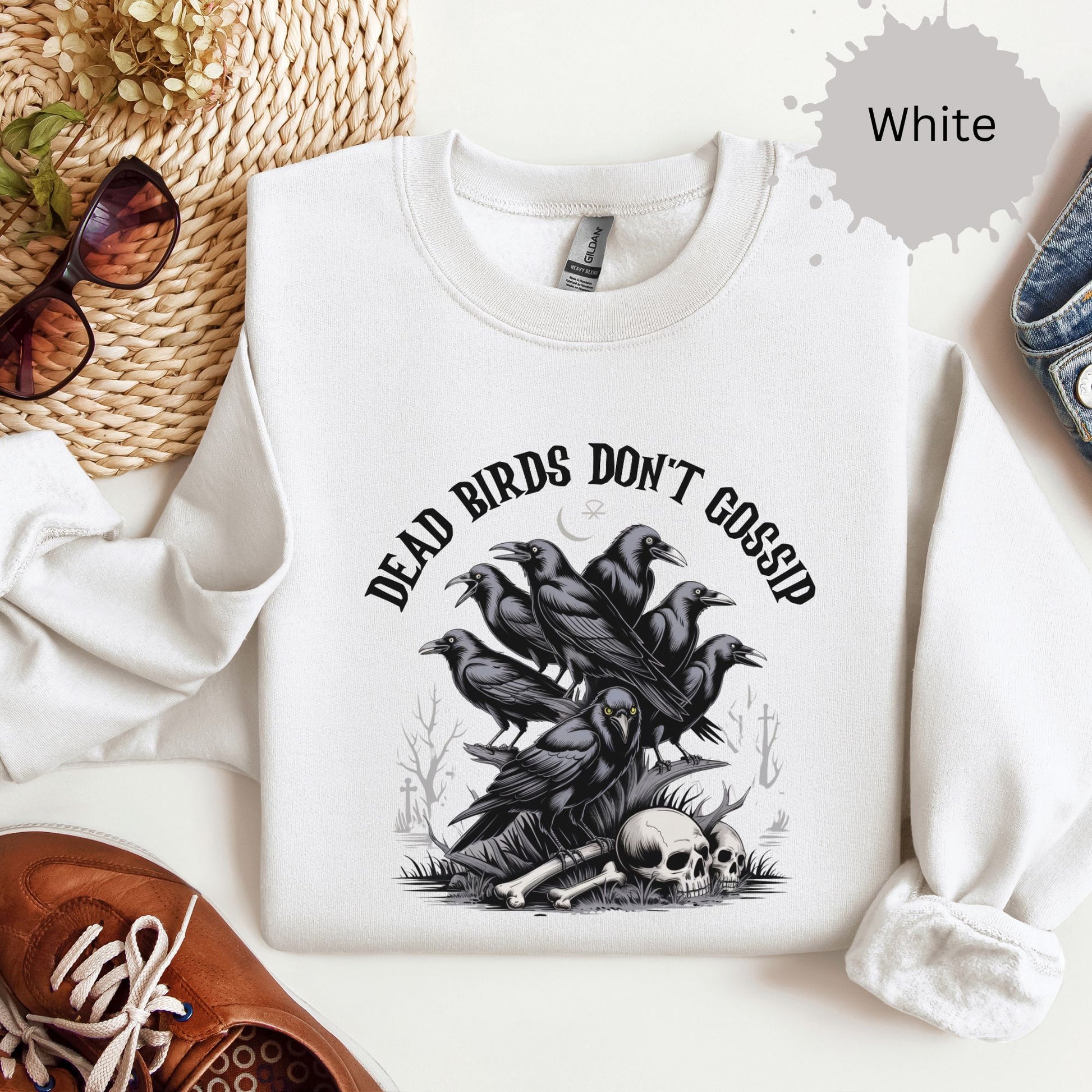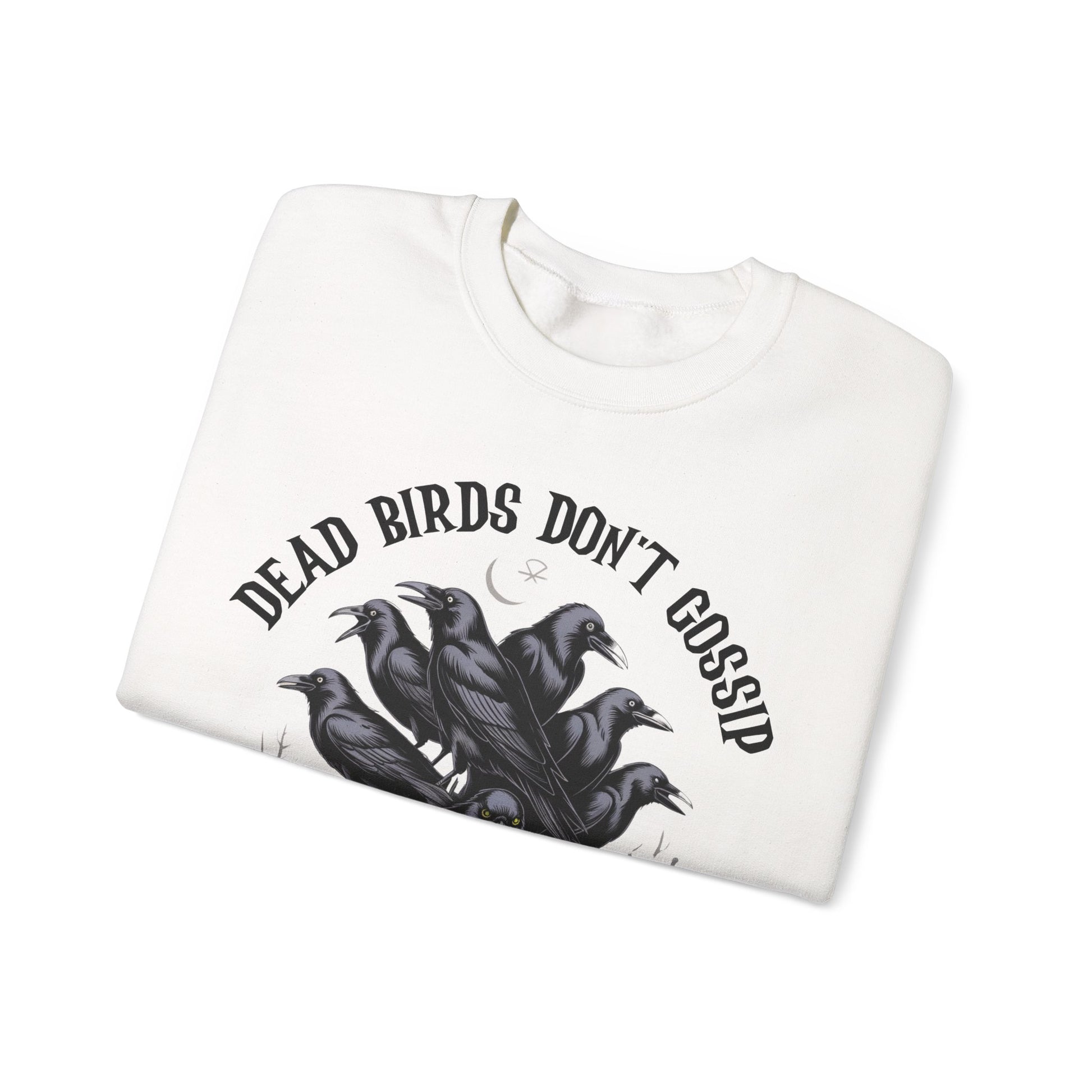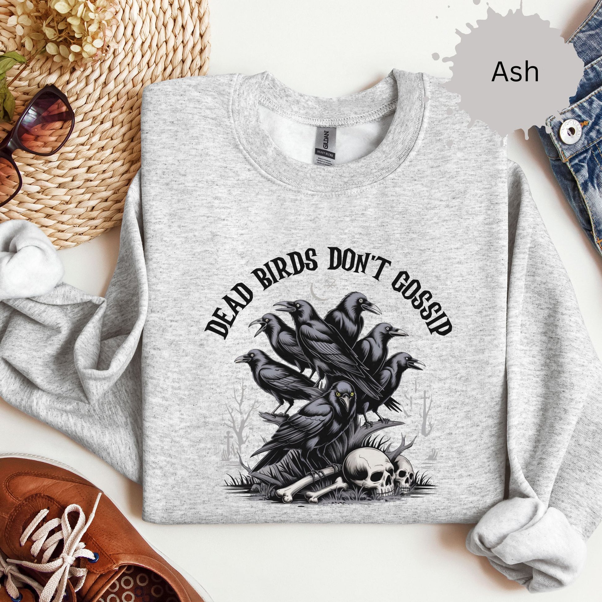 When silence says everything. This Witchy Halloween Vibes Sweatshirt features the hauntingly bold “Dead Birds Don’t Gossip” design—perfect for lovers of dark humor, gothic vibes, and Halloween style with a bite.
