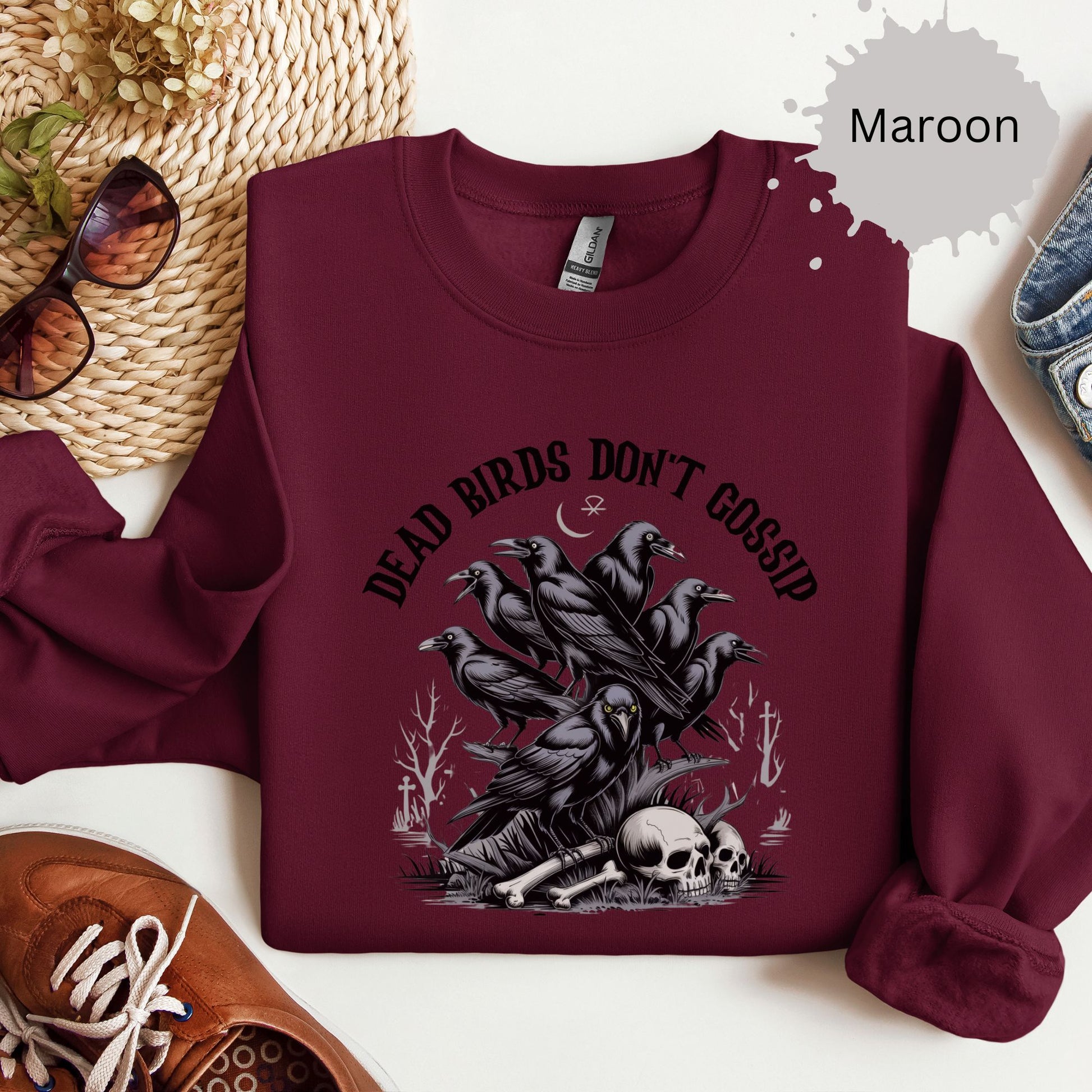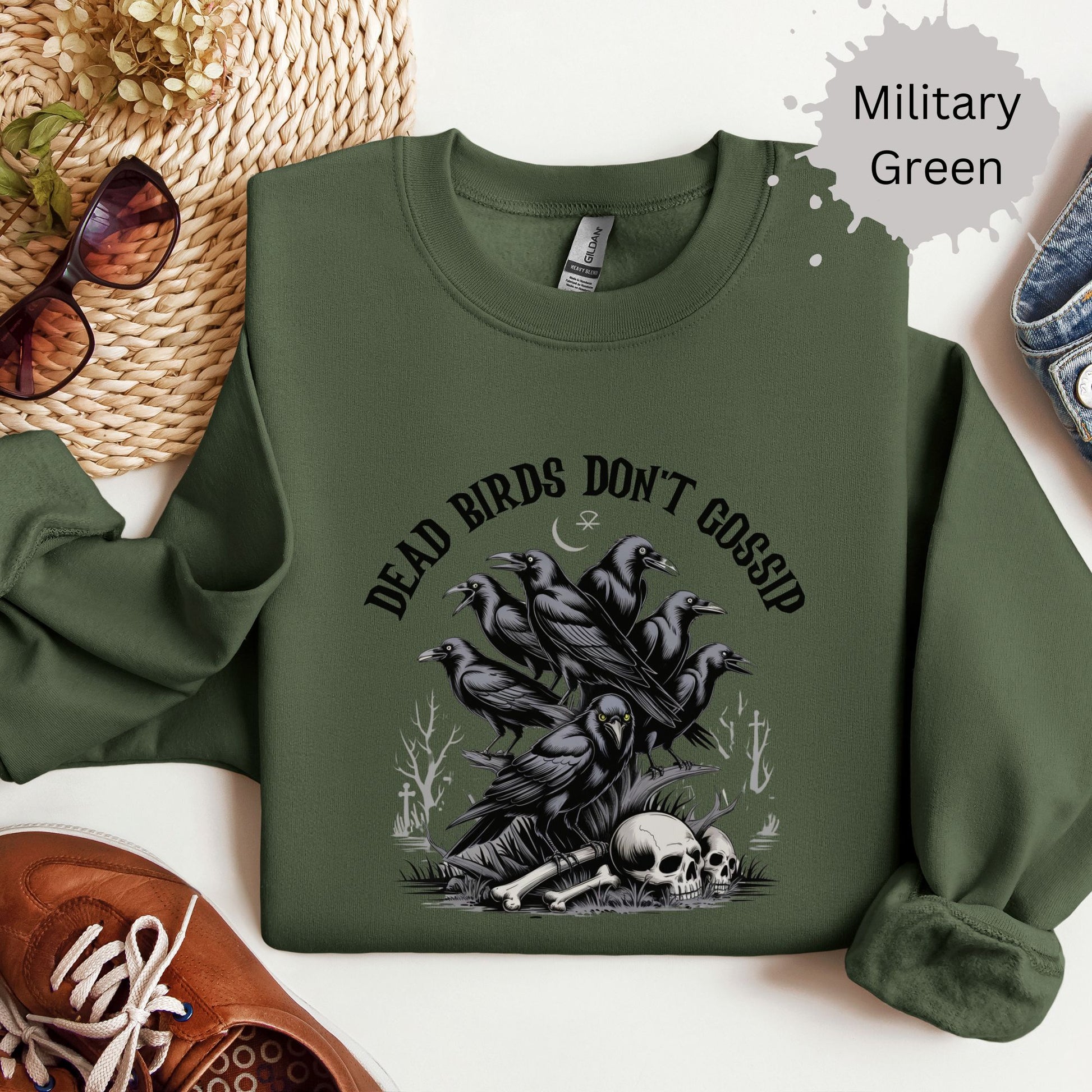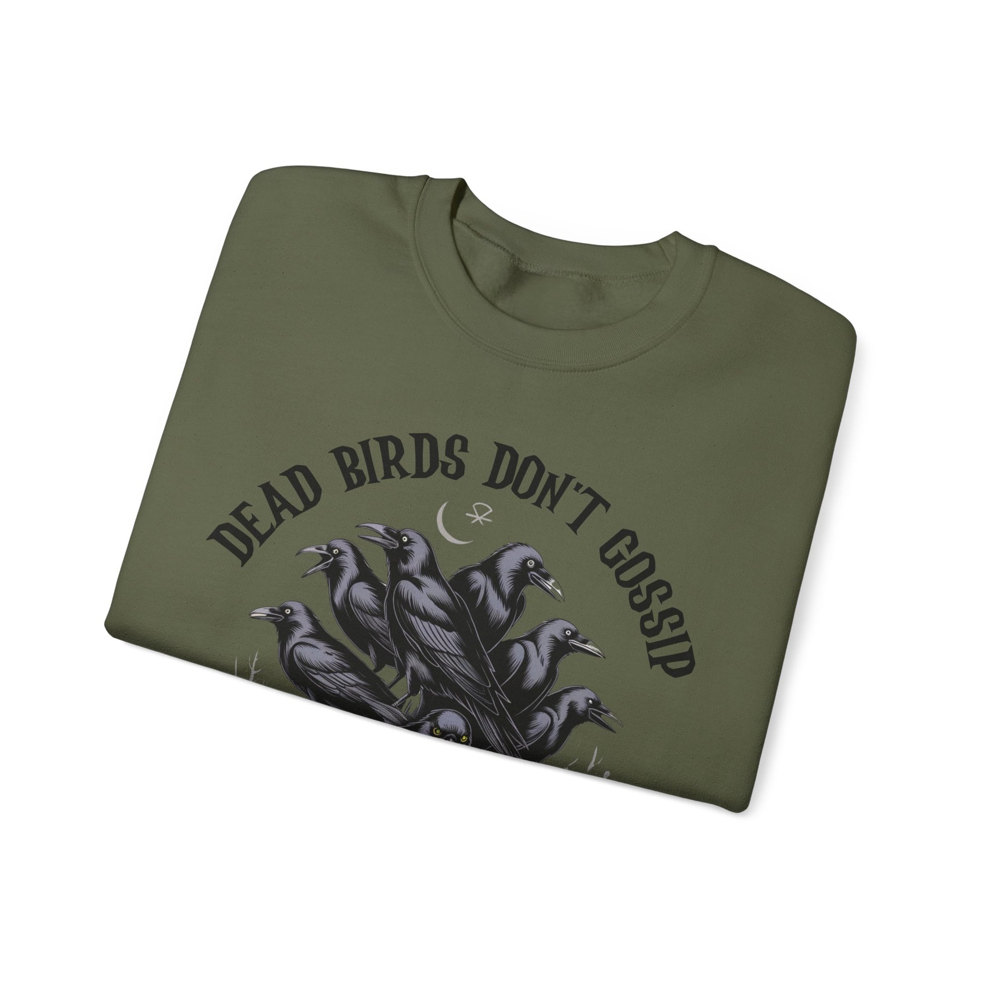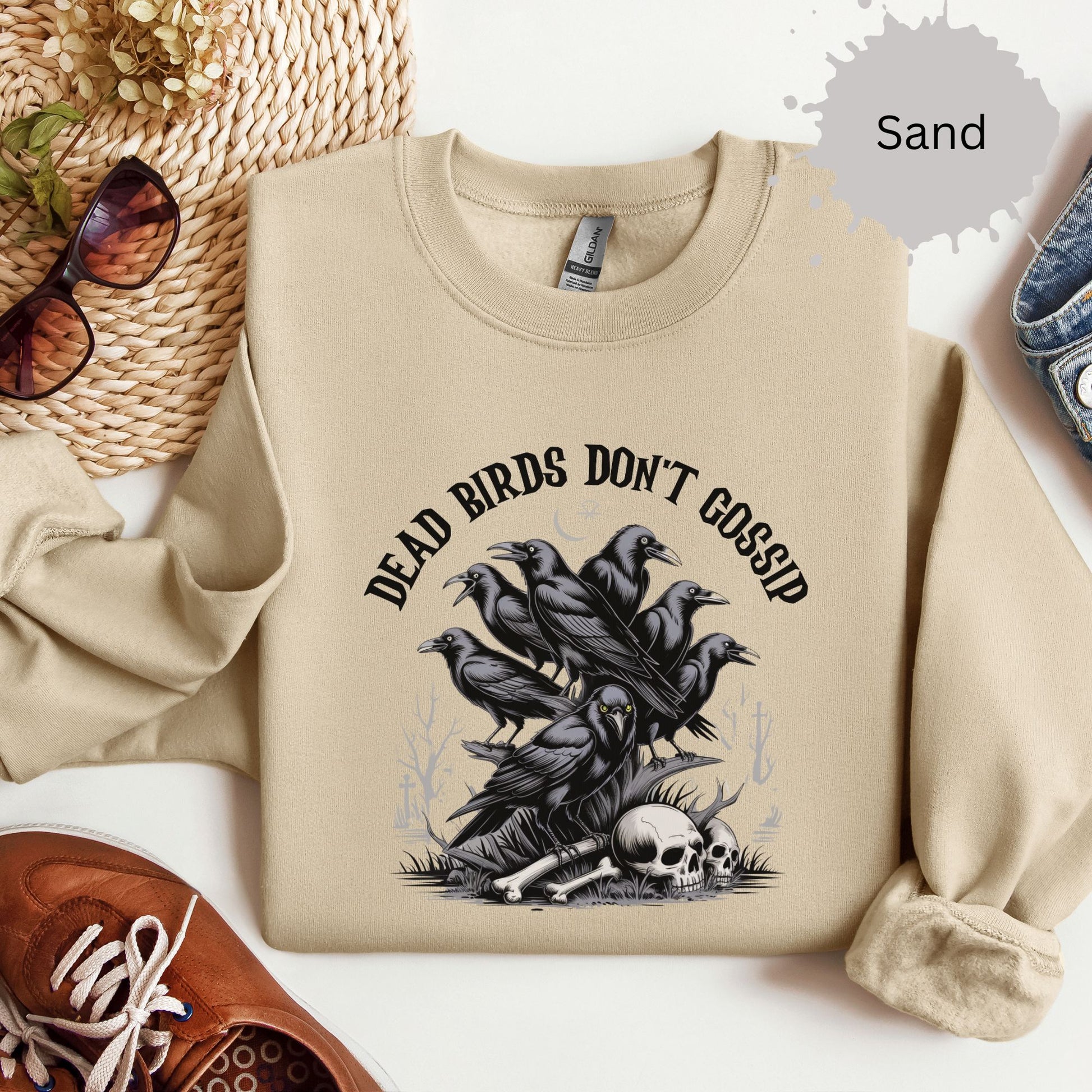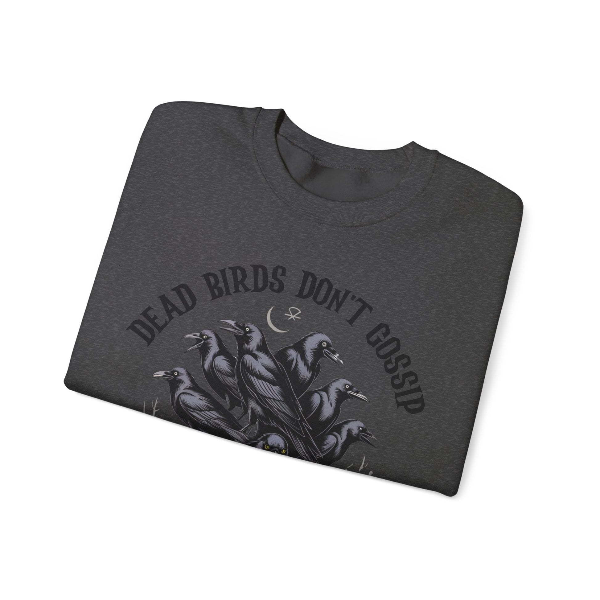 When silence says everything. This Witchy Halloween Vibes Sweatshirt features the hauntingly bold “Dead Birds Don’t Gossip” design—perfect for lovers of dark humor, gothic vibes, and Halloween style with a bite.