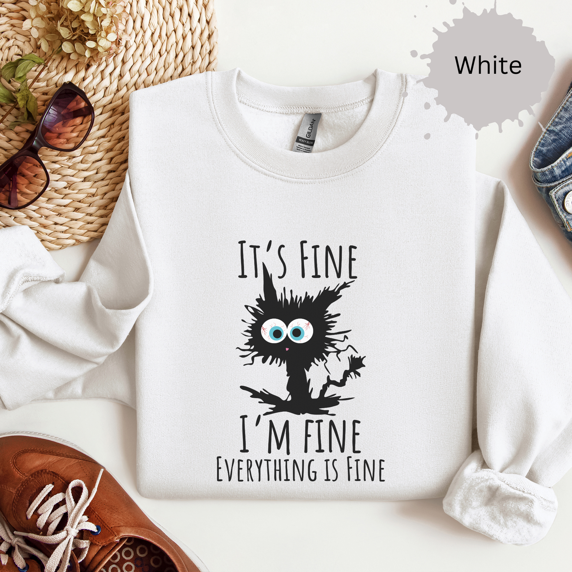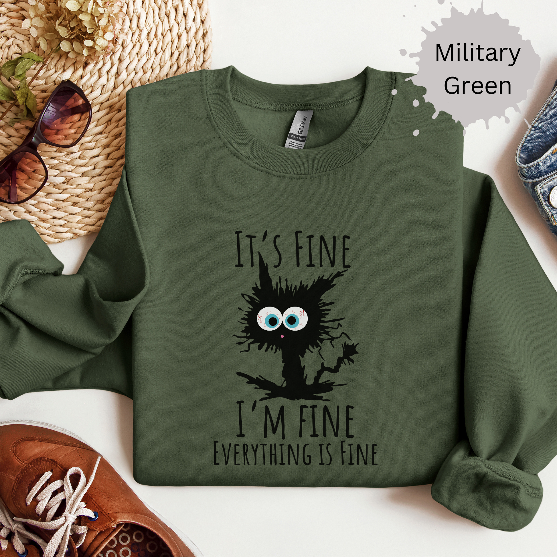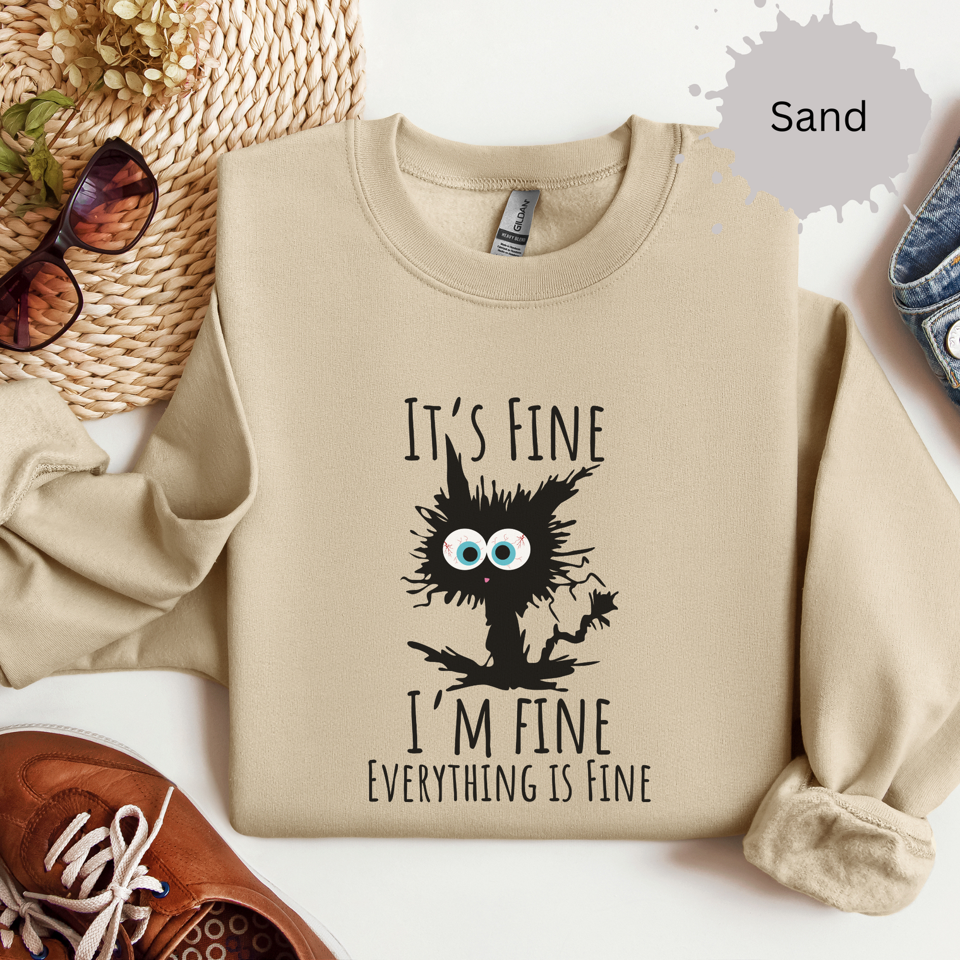 When your vibe matches a frazzled cat but you’re still claiming it’s fine, this sweatshirt says it all. Perfect for chaotic days when 'fine' is a stretch.