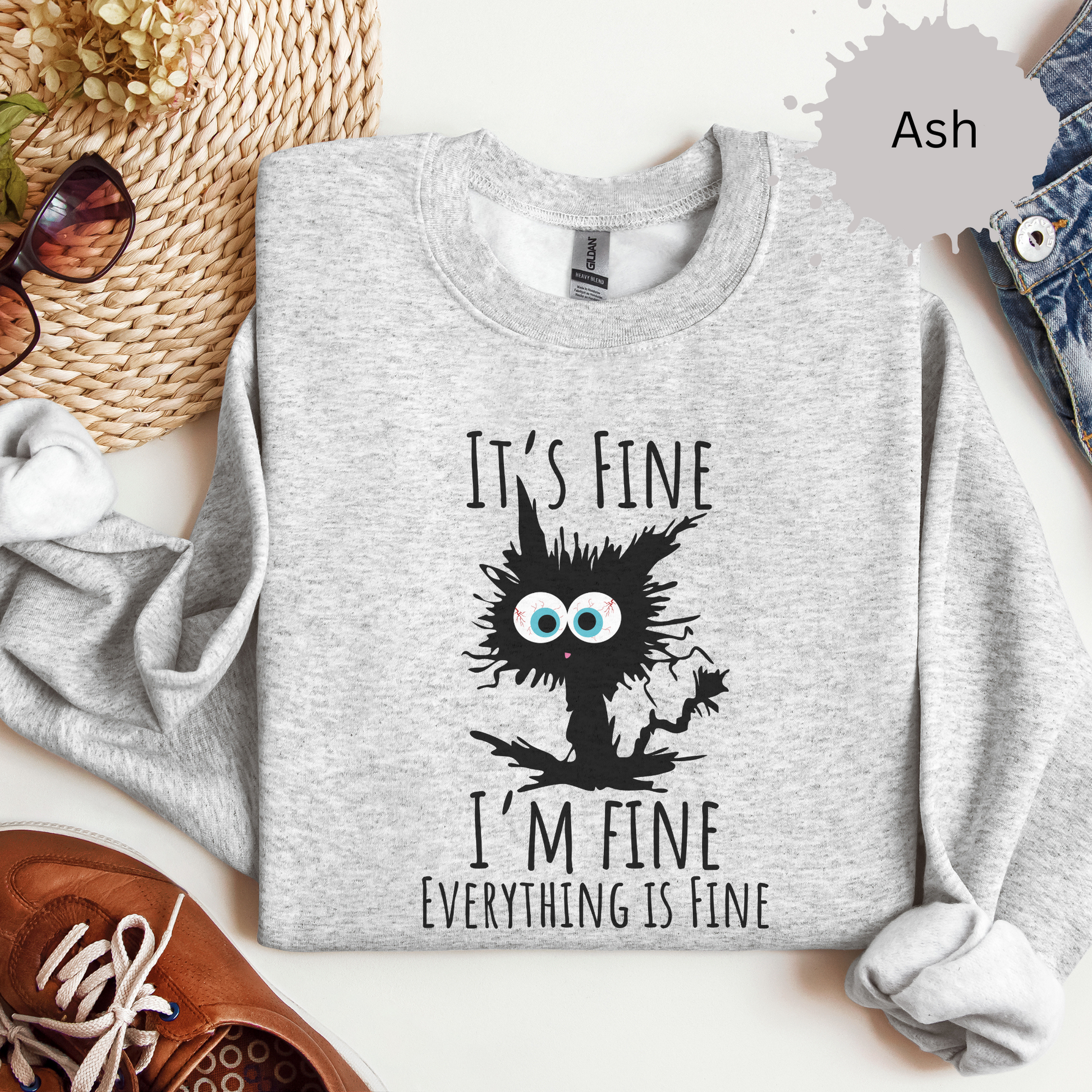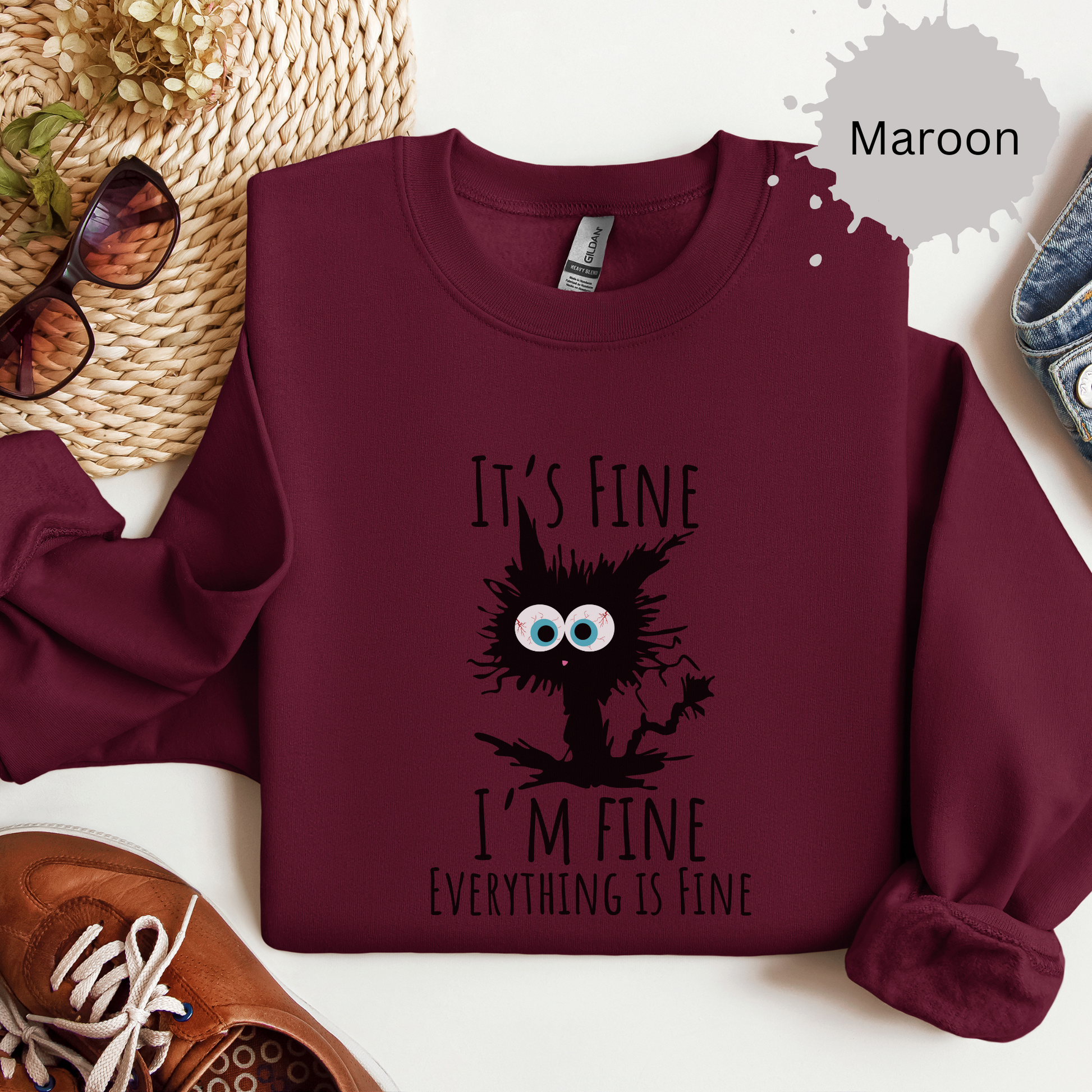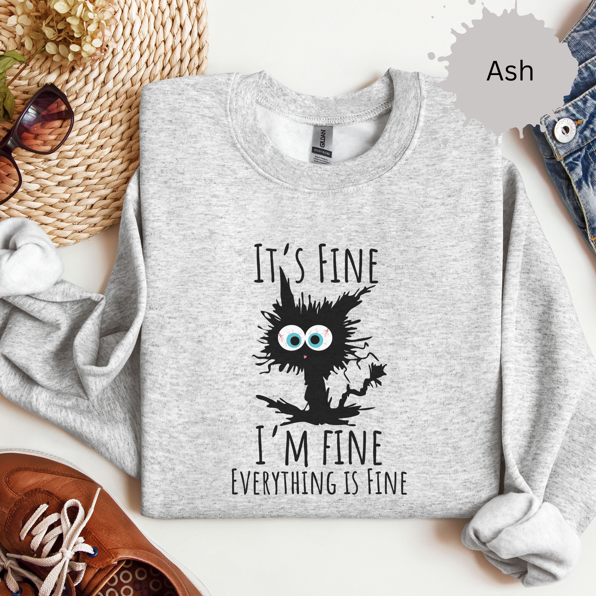 When your vibe matches a frazzled cat but you’re still claiming it’s fine, this sweatshirt says it all. Perfect for chaotic days when 'fine' is a stretch.