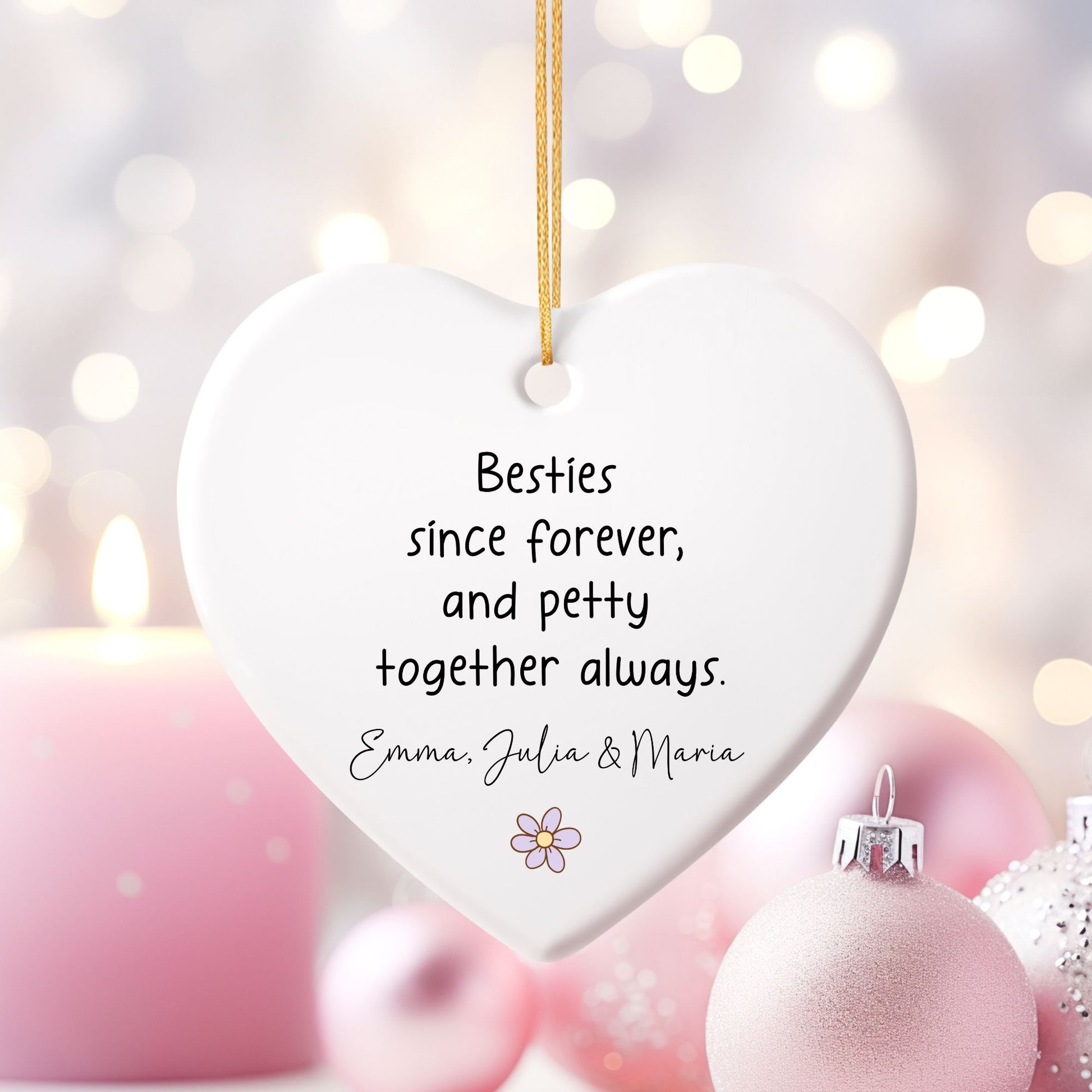 If friendship had a warning label, this ornament would be it. Bold, funny, and just the right amount of petty — this ceramic heart is the ultimate holiday flex for the bestie who knows way too much about you. Hang it, laugh at it, and remind them they’re stuck with you.