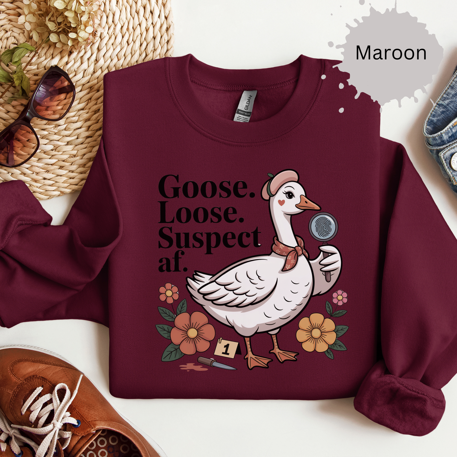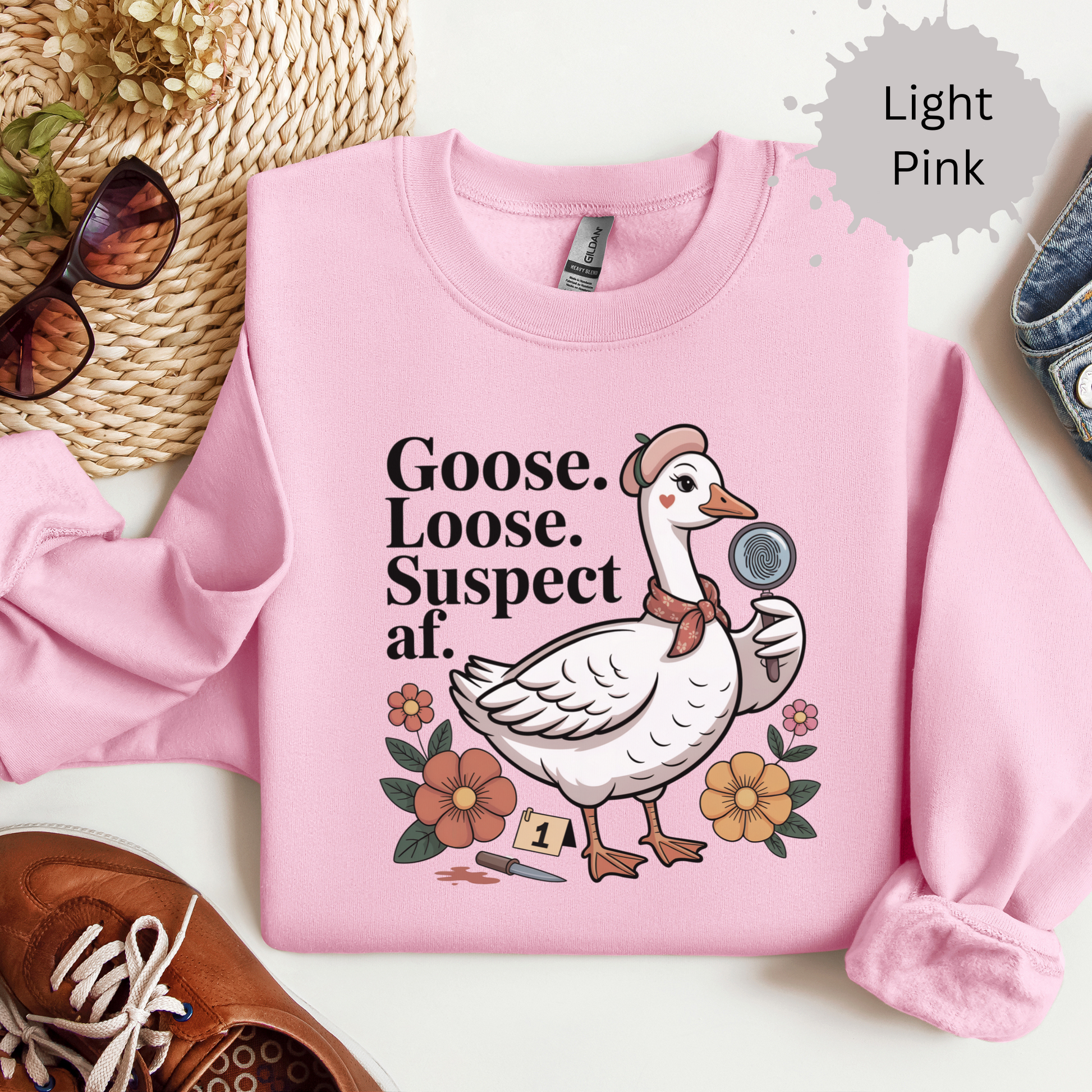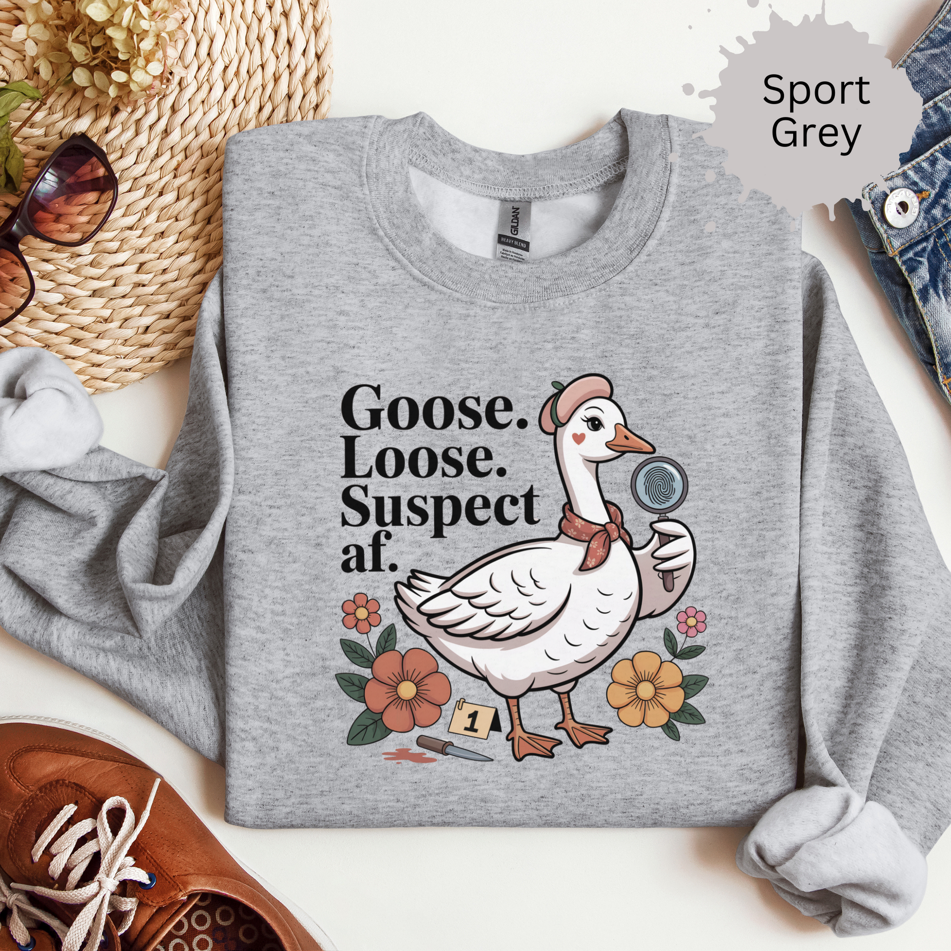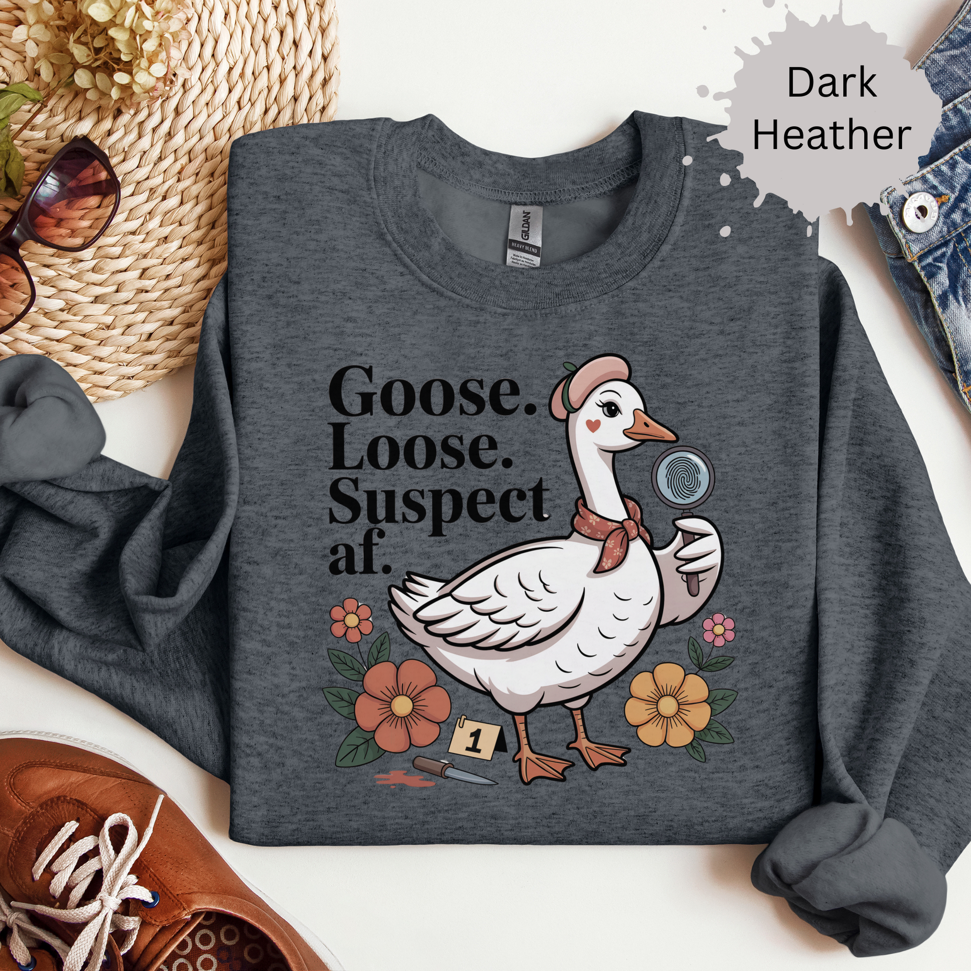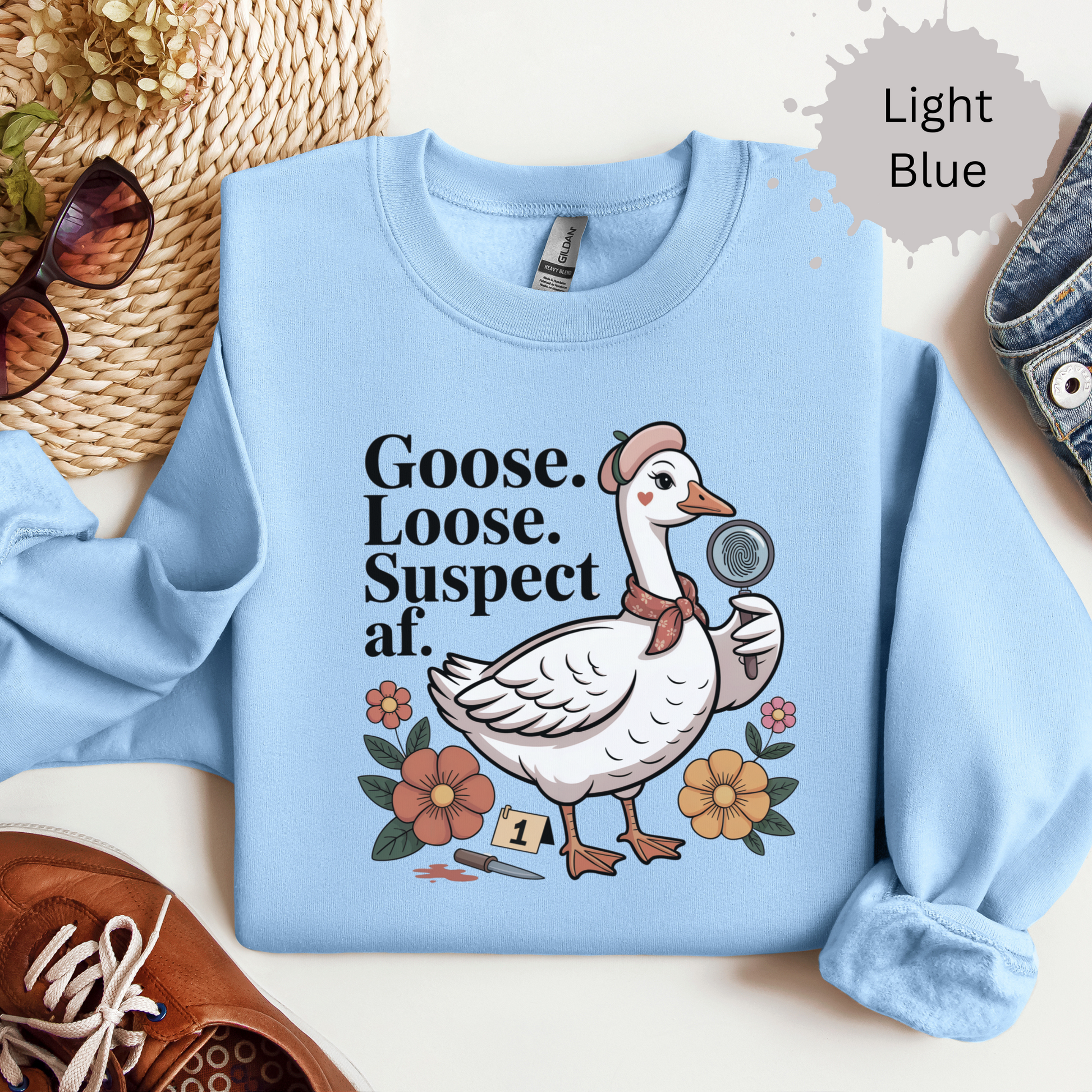 This funny goose sweatshirt inspired by true crime is the perfect combo of chaotic animal energy and true crime fangirl humor. Whether you're into silly goose memes, murder mysteries, or just deeply unhinged vibes, this shirt is guaranteed to get side-eyes and laughs.