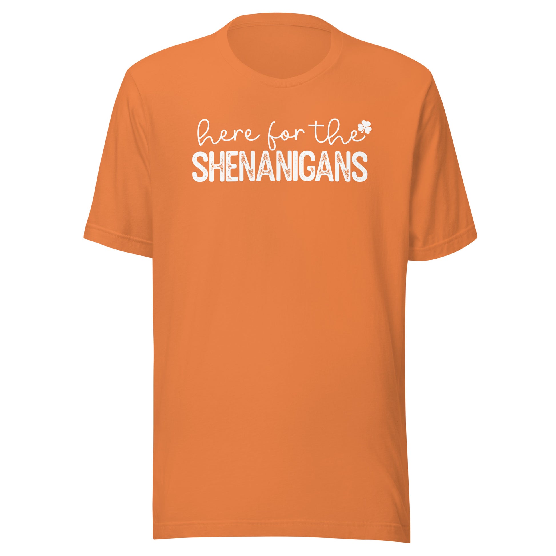 Get ready to stir up some trouble and turn heads this St. Patrick's Day with our "Here for the Shenanigans" t-shirt! Because let's face it, why else would you be here?