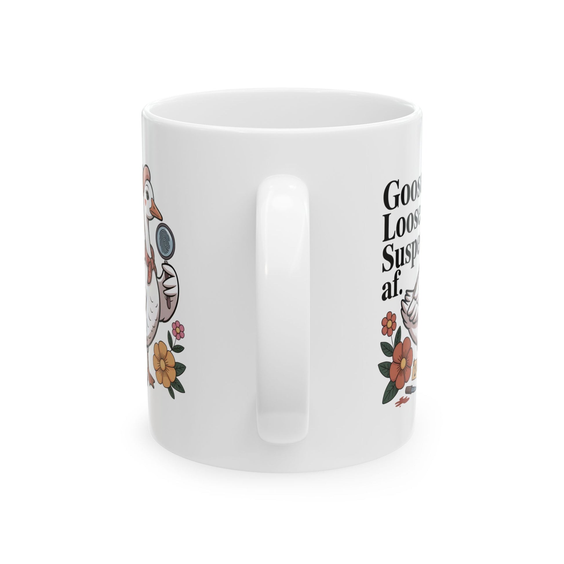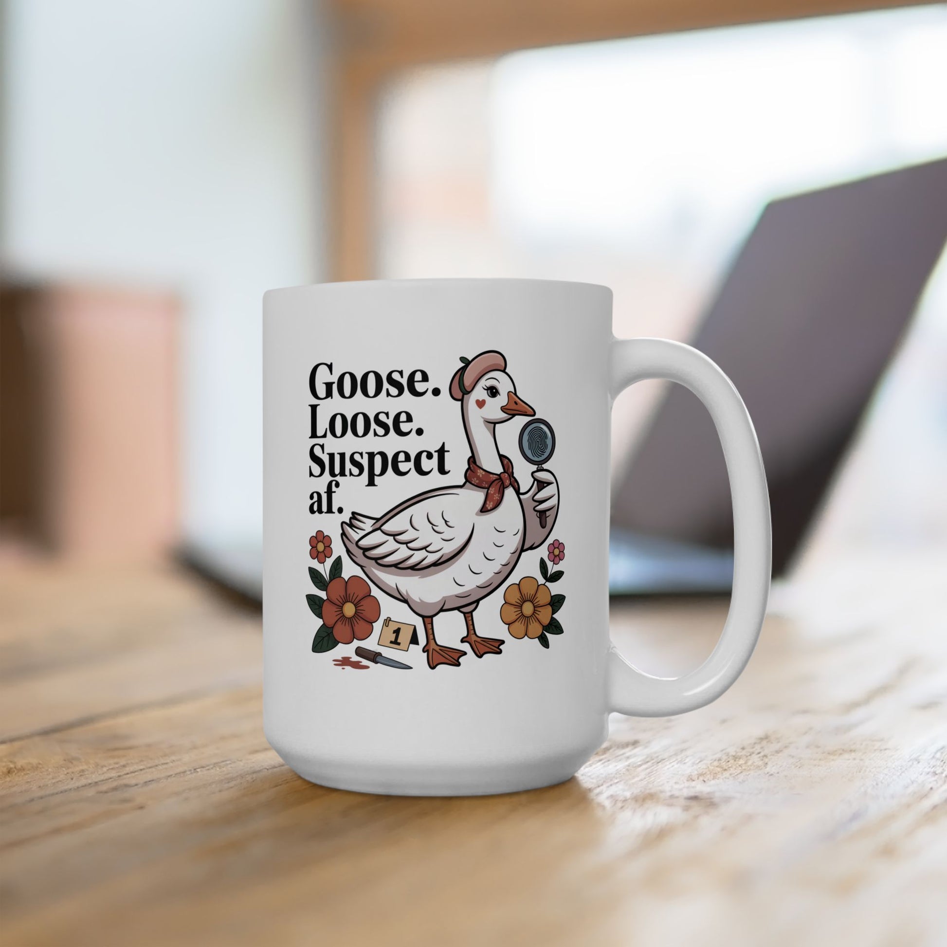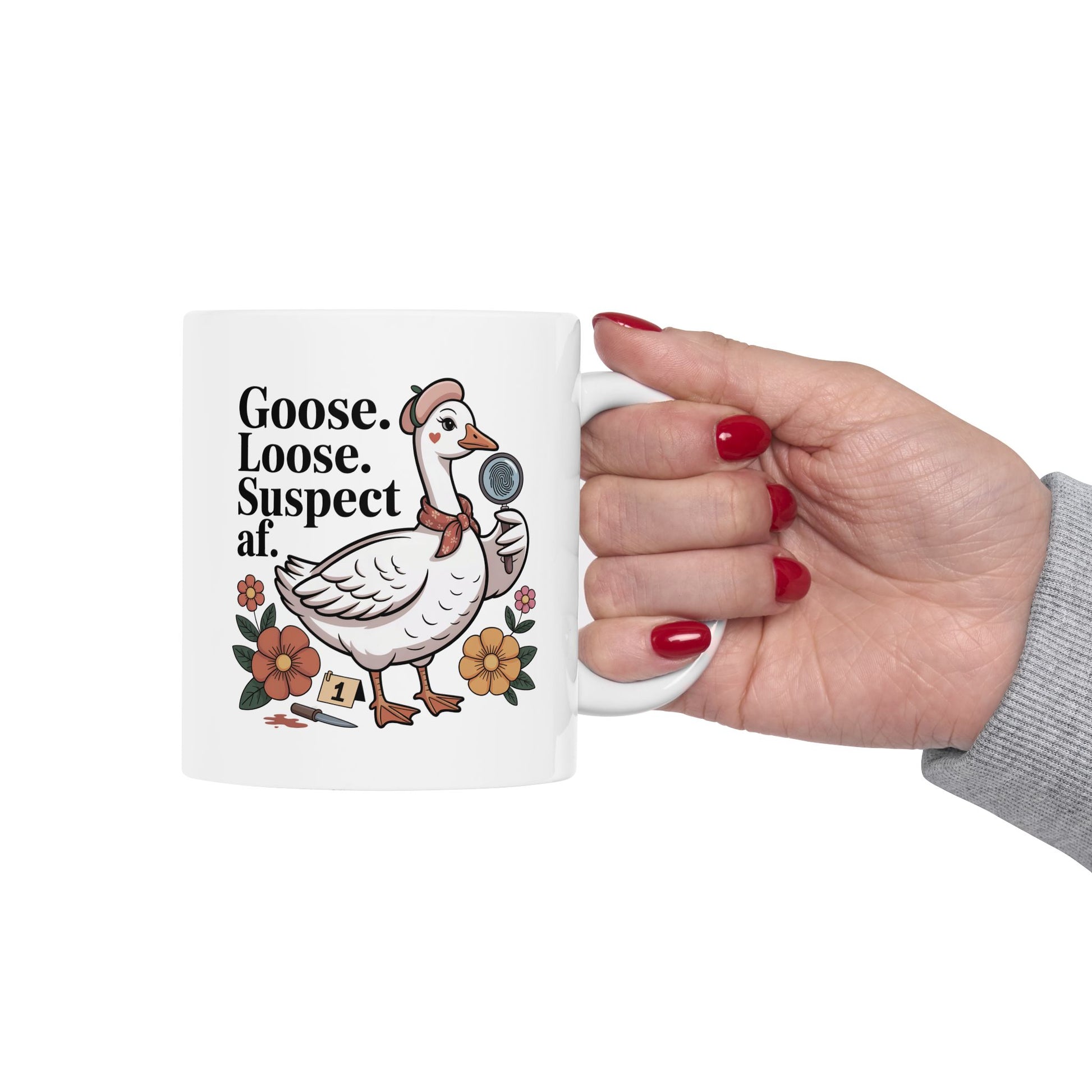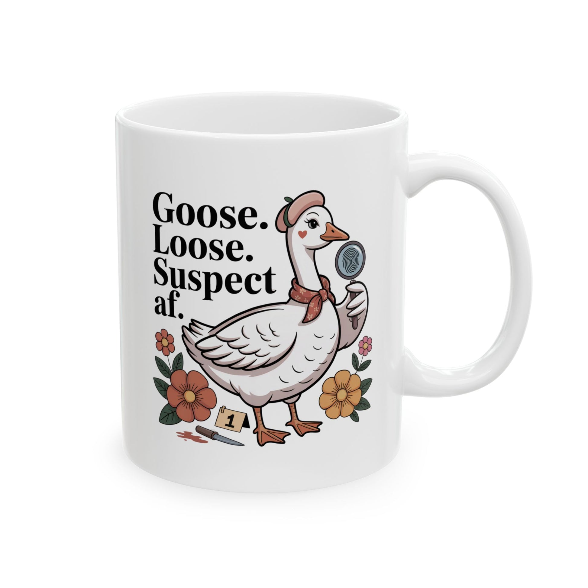 He’s loose. He’s a goose. And frankly, he’s suspect AF. This chaotic crimecore mug is the perfect gift for sarcastic animal lovers, true crime addicts, or anyone who suspects their comfort bird is hiding something.