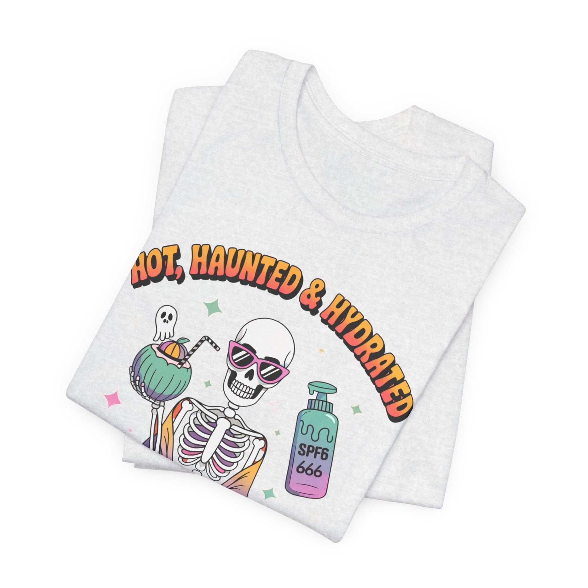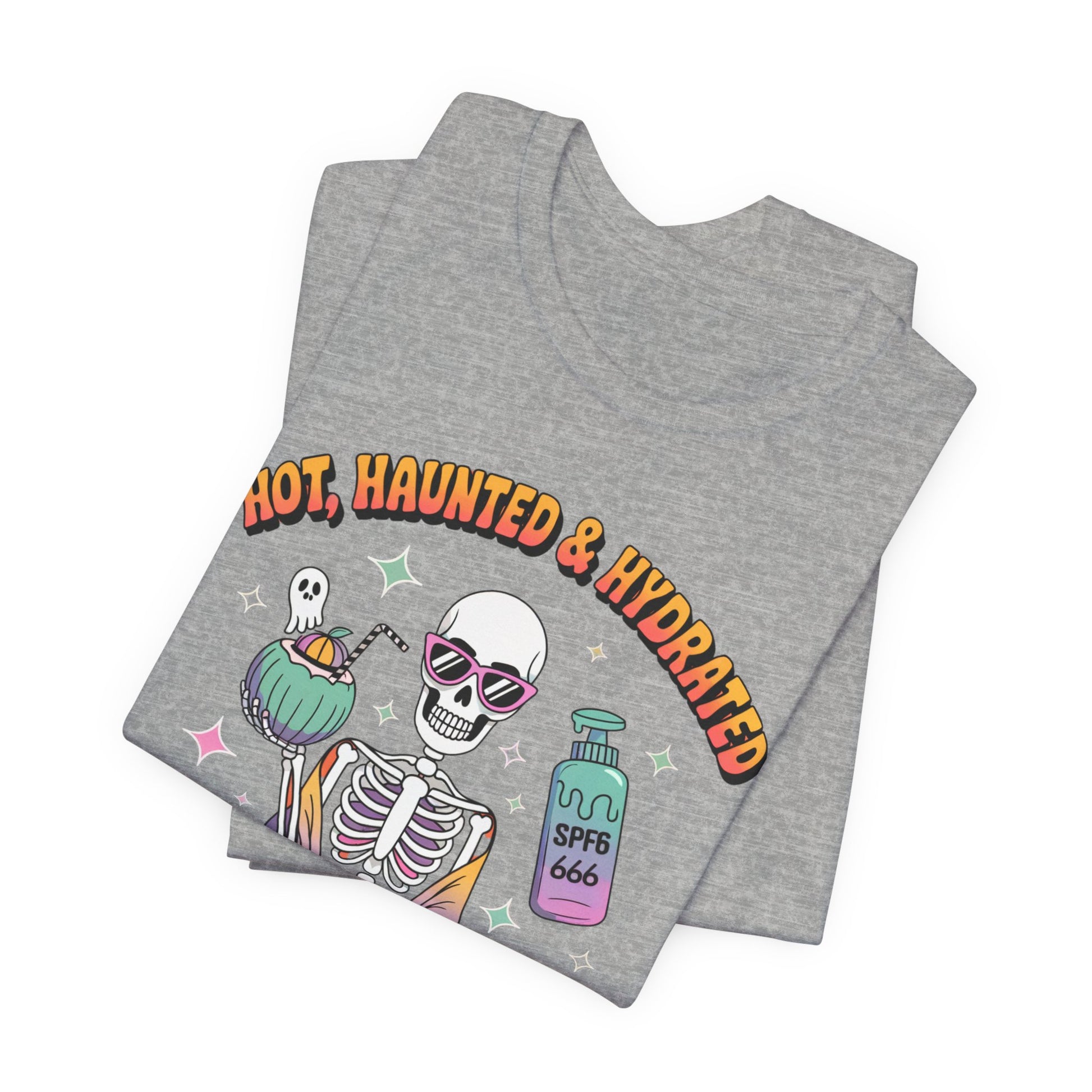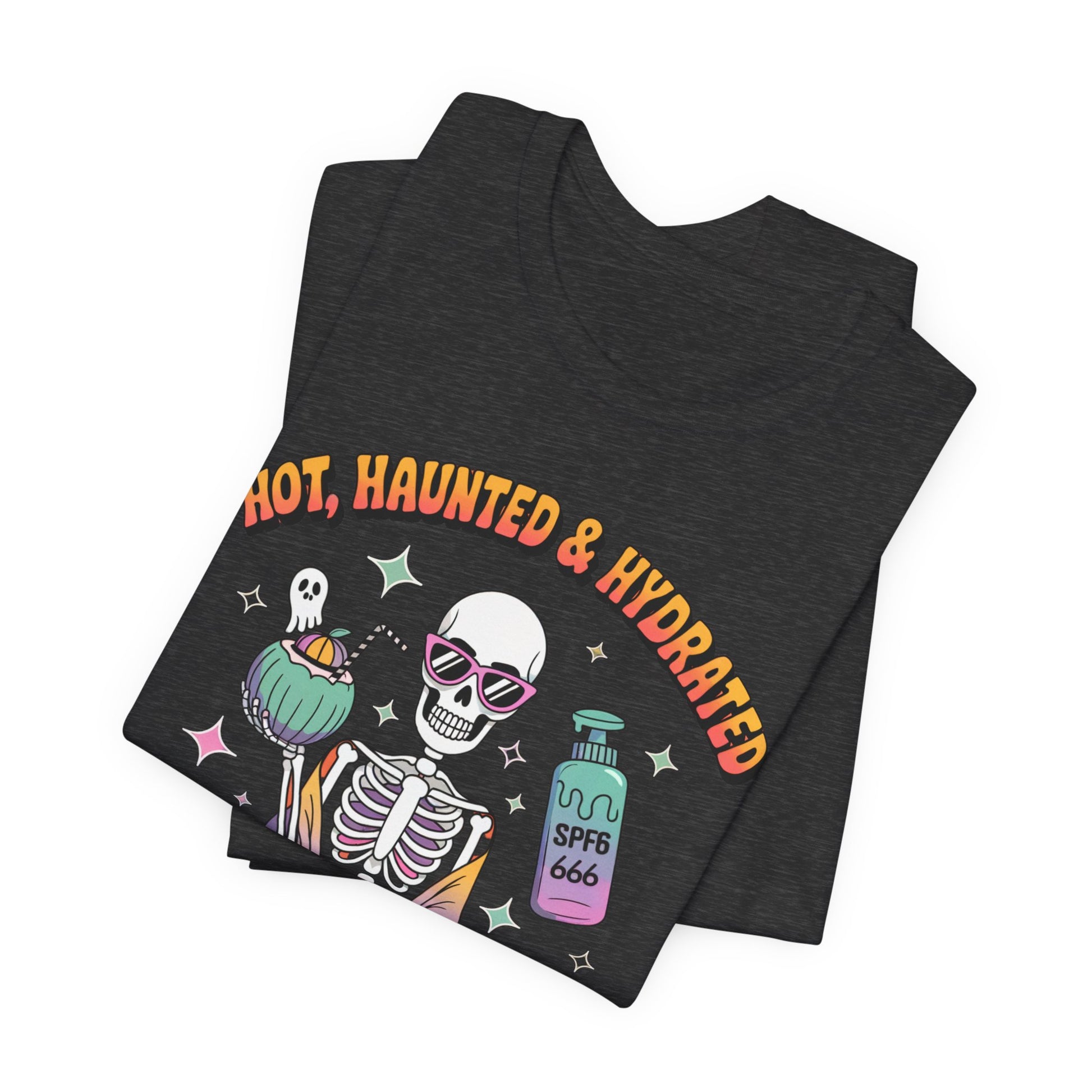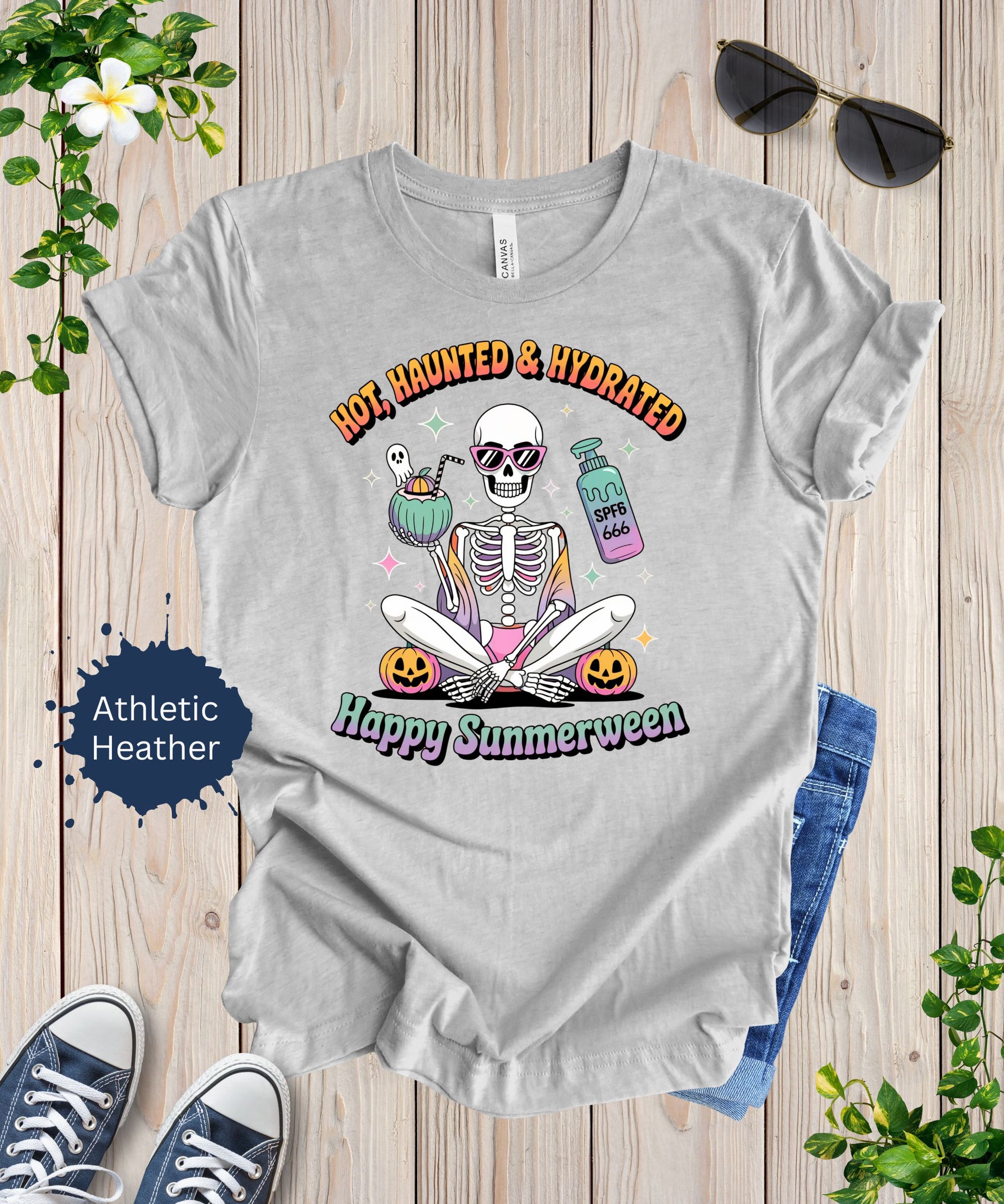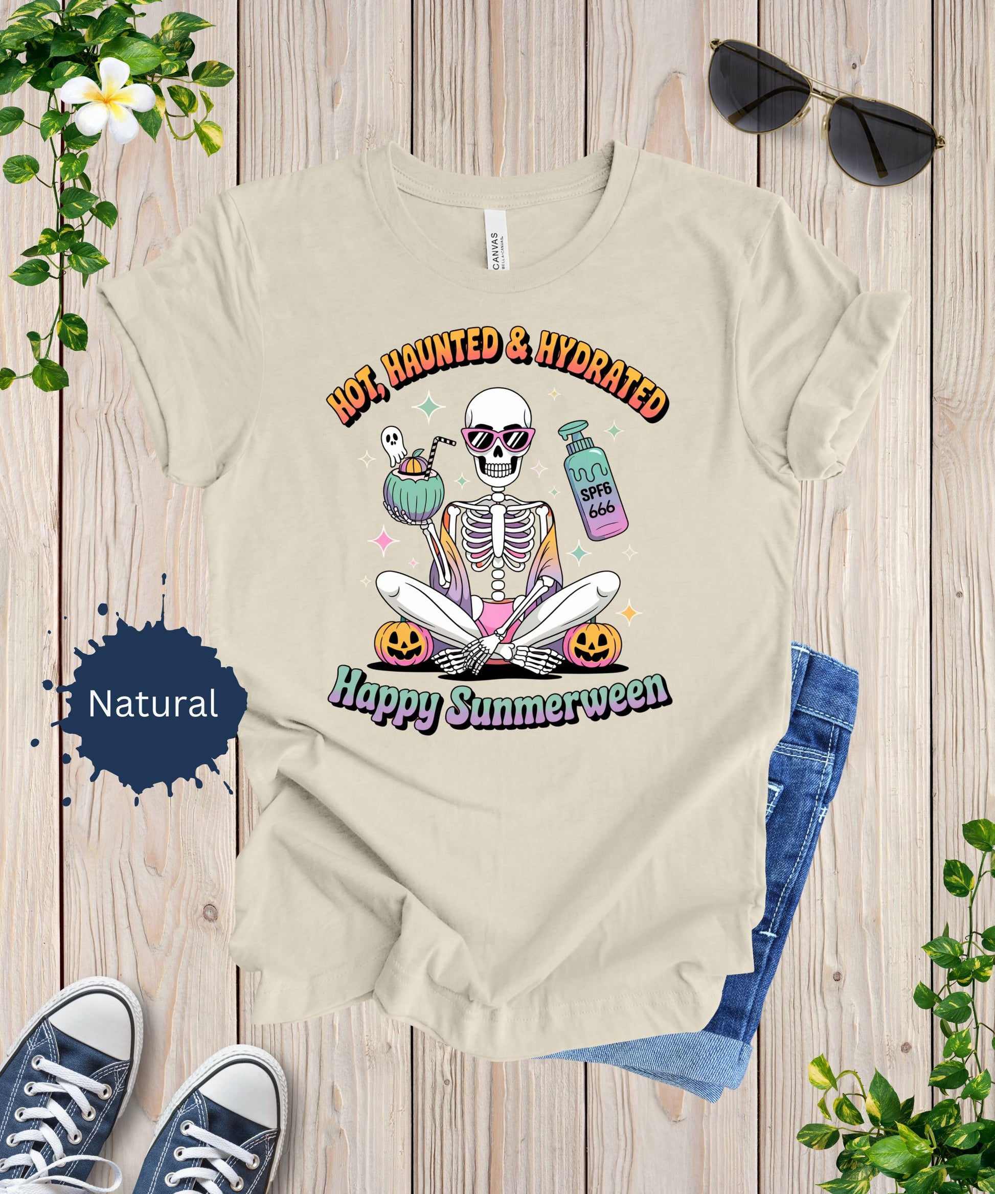 Celebrate spooky season in full sun with this bold and beachy Summerween tee. It’s the perfect fit for ghouls who glow in the dark and the daylight. Whether you're sipping spirits by the shore or haunting the pool party, this skeleton-approved shirt keeps your vibe hot, haunted, and hydrated.