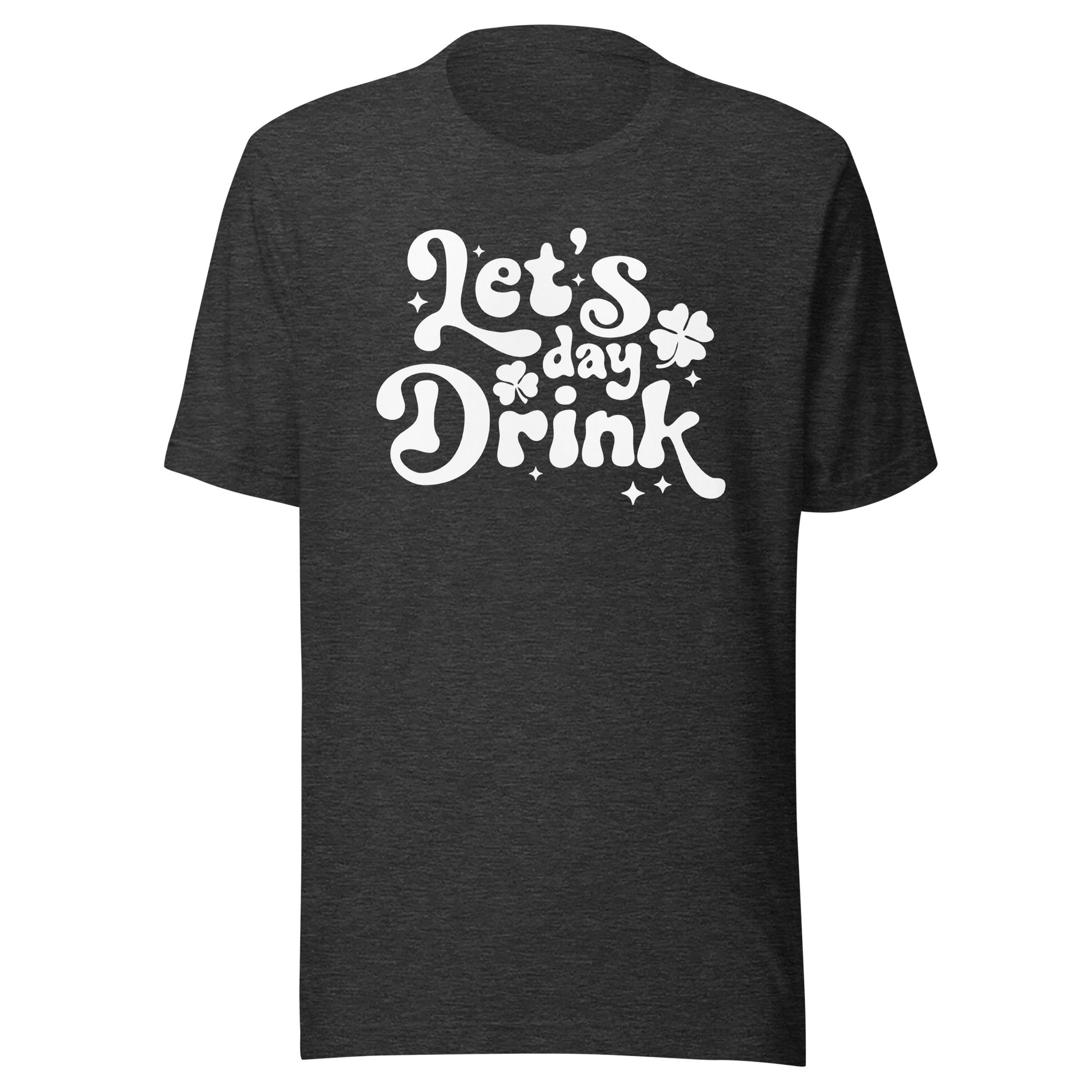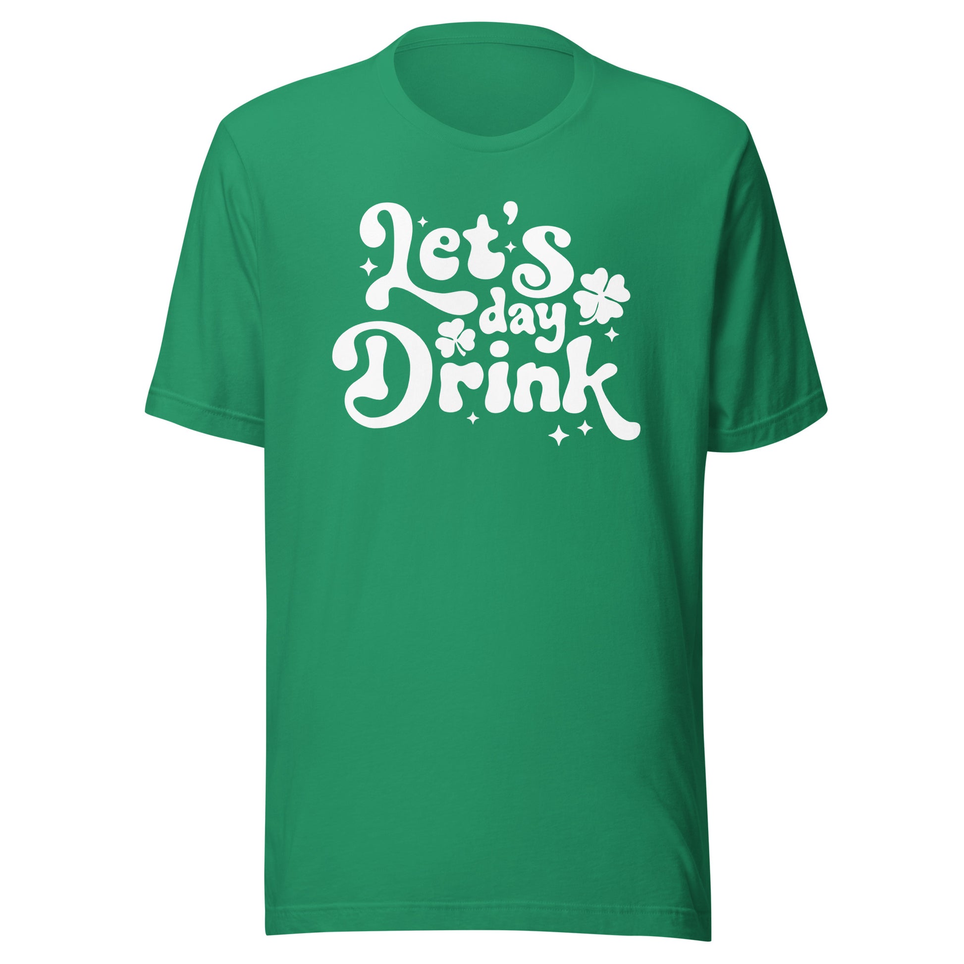 Get ready to make a bold proclamation with our "Let's Day Drink" t-shirt this St. Patrick's Day! Because why wait until the sun sets to start the celebration?
