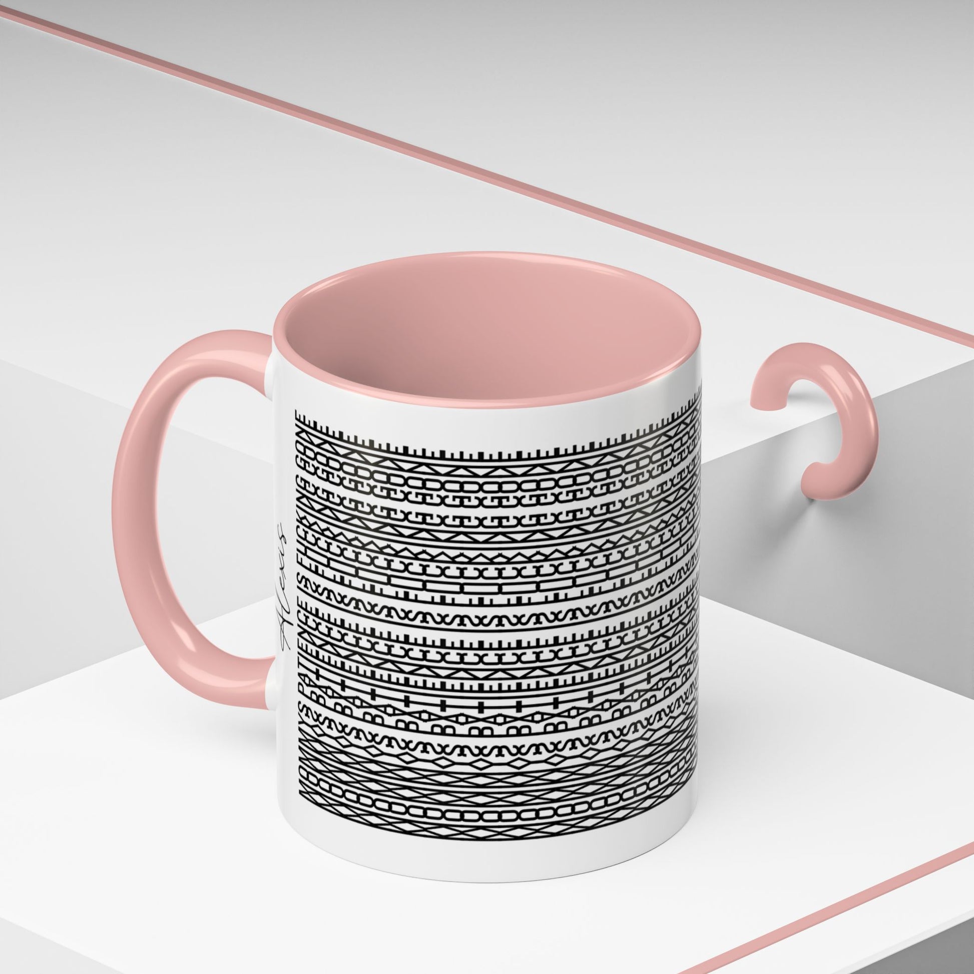 • Material: white ceramic with colored interior, rim and handle