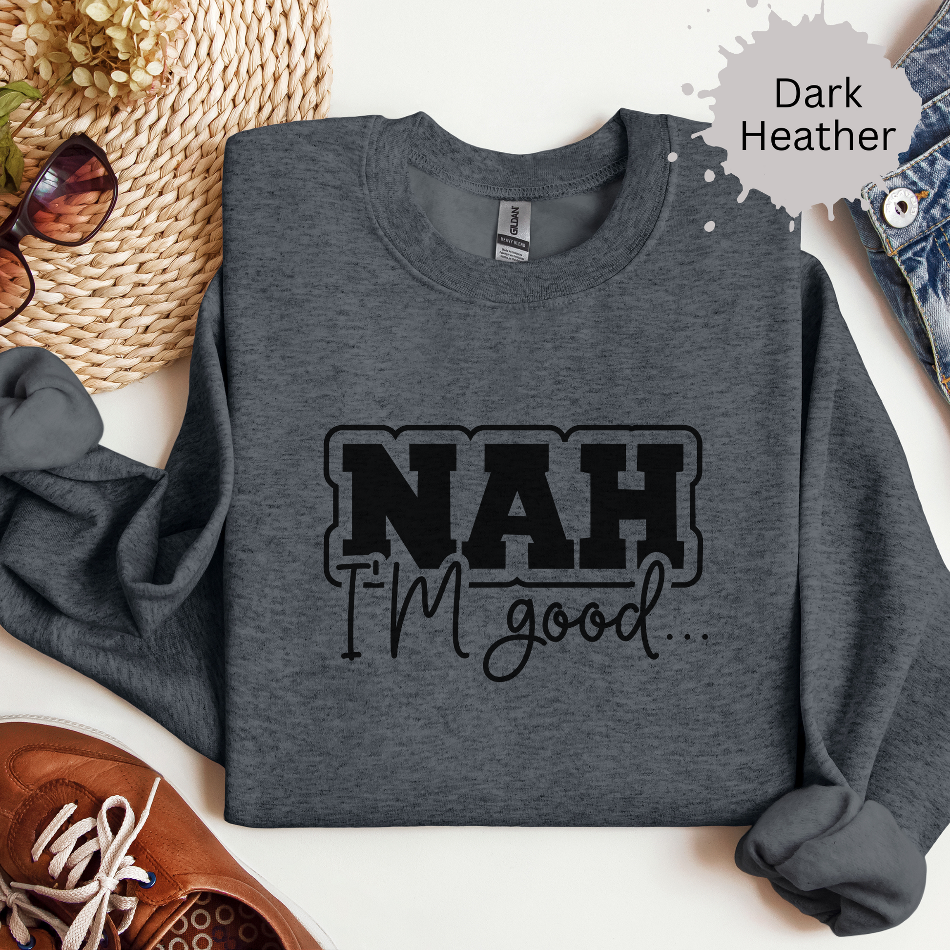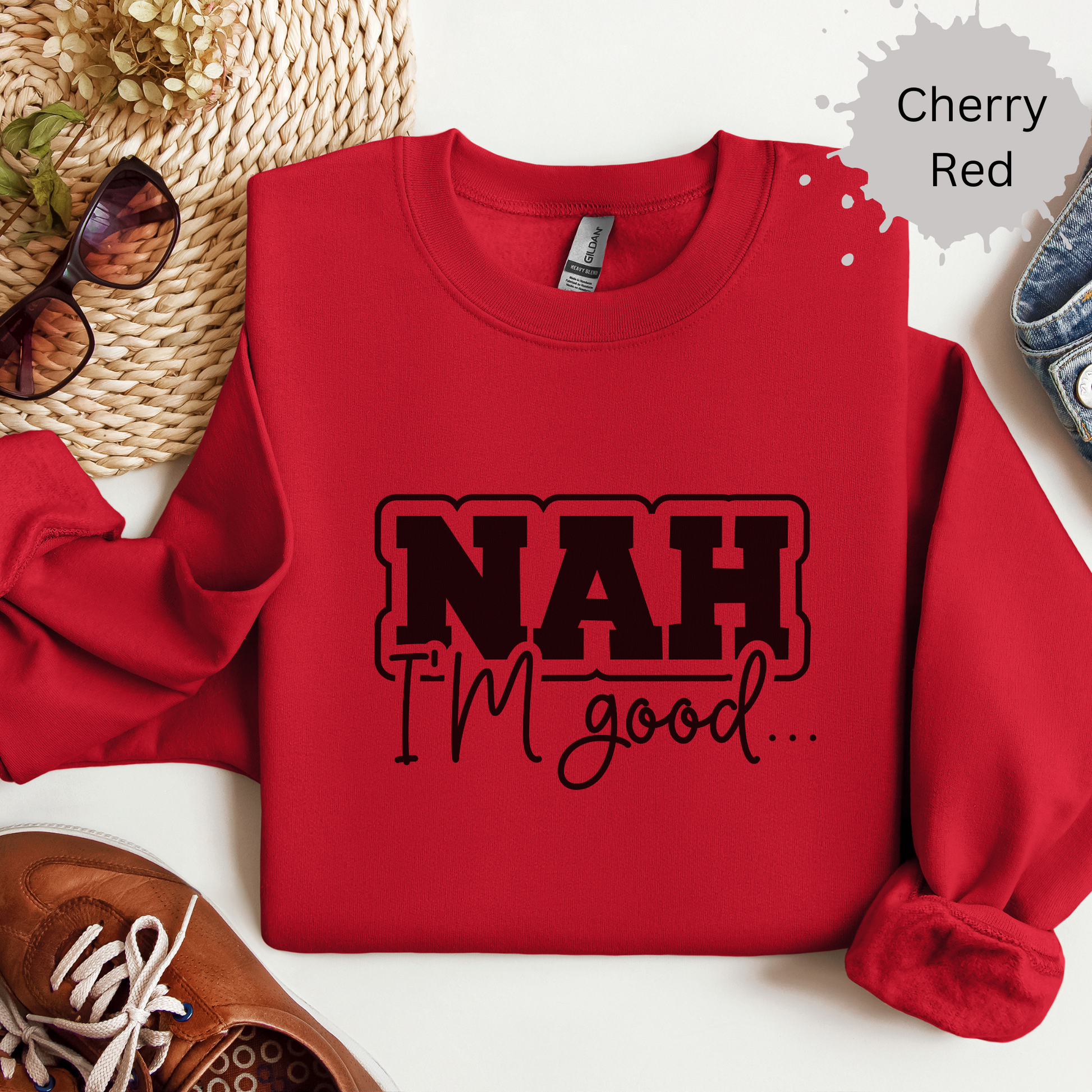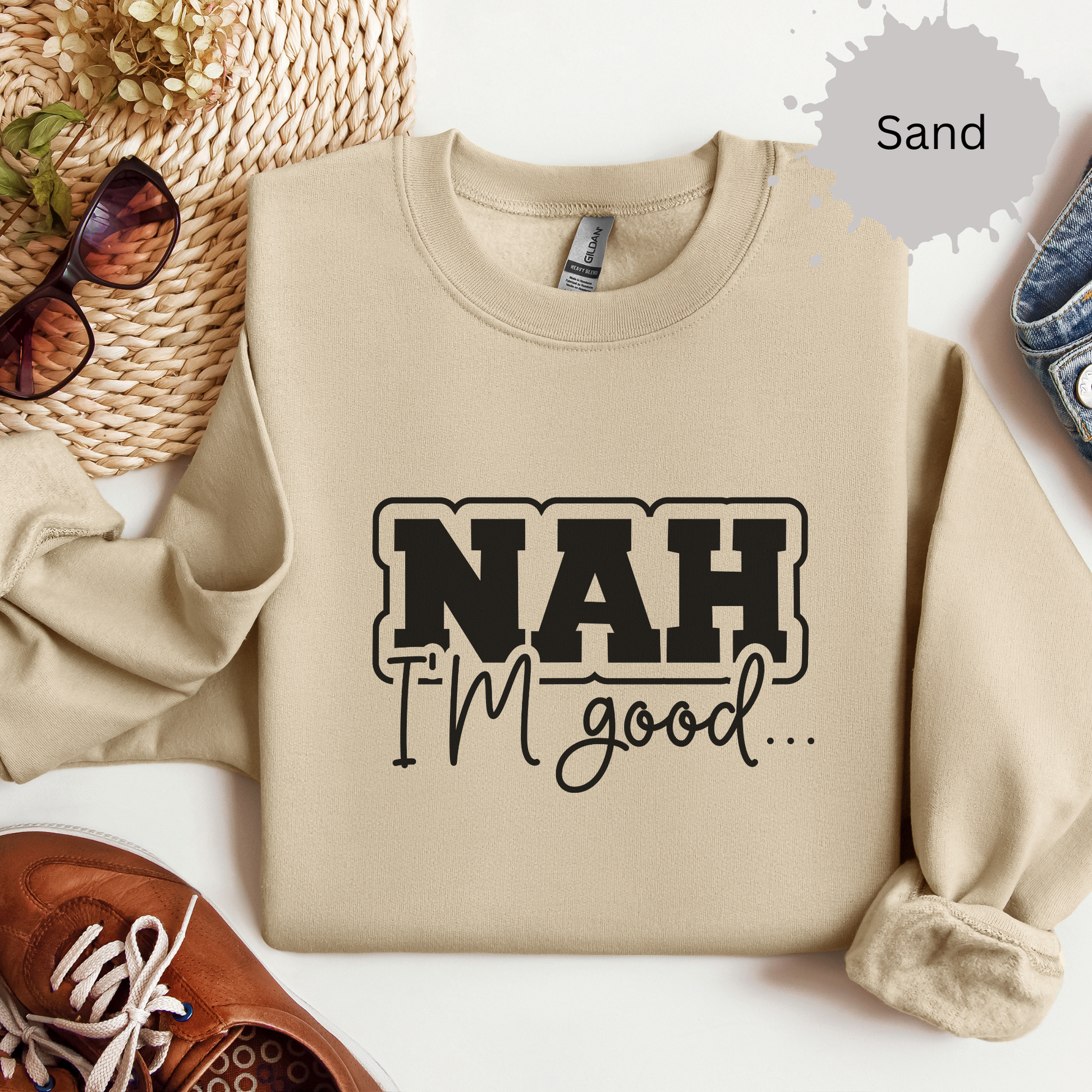 Sometimes a simple 'nah' says it all. This sweatshirt is perfect for those moments when you’re politely declining… or just don’t have the energy to explain why.