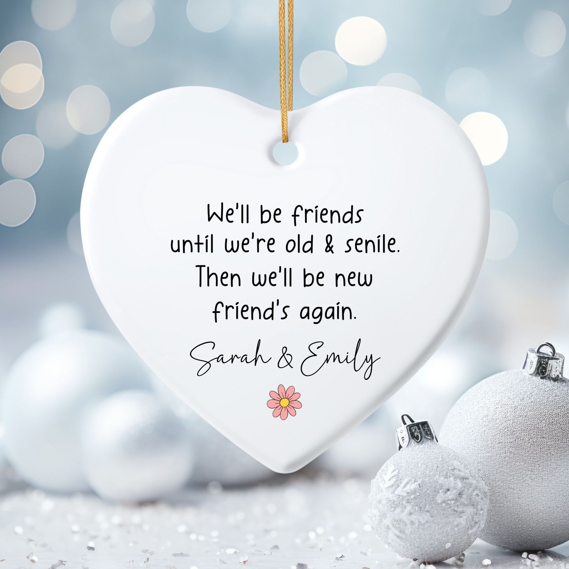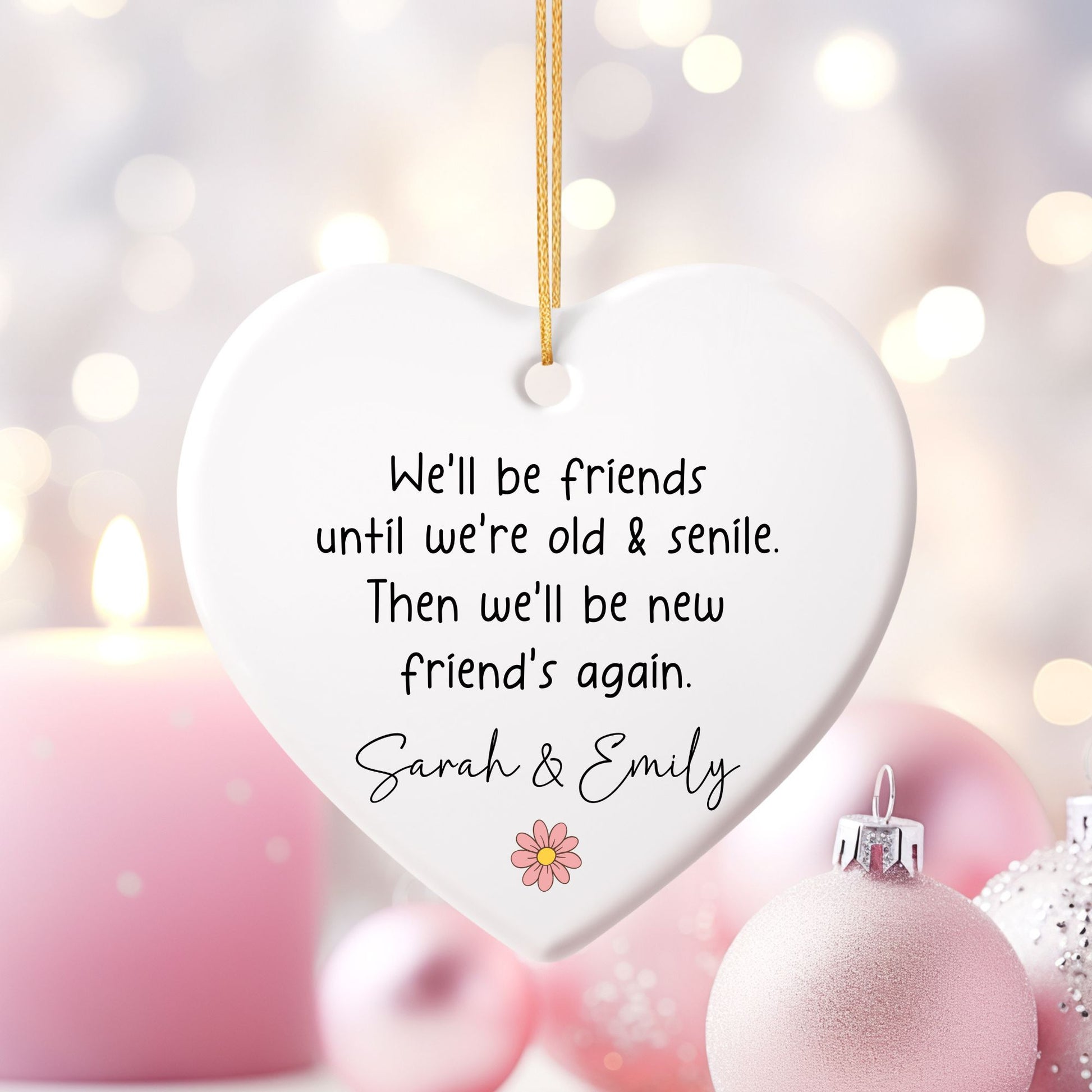 Celebrate your ride-or-die friendship with this funny ceramic heart ornament, designed as a playful keepsake for best friends who love a little sass. This unique gift for friends doubles as a holiday decoration or year-round reminder of your unshakable bond.