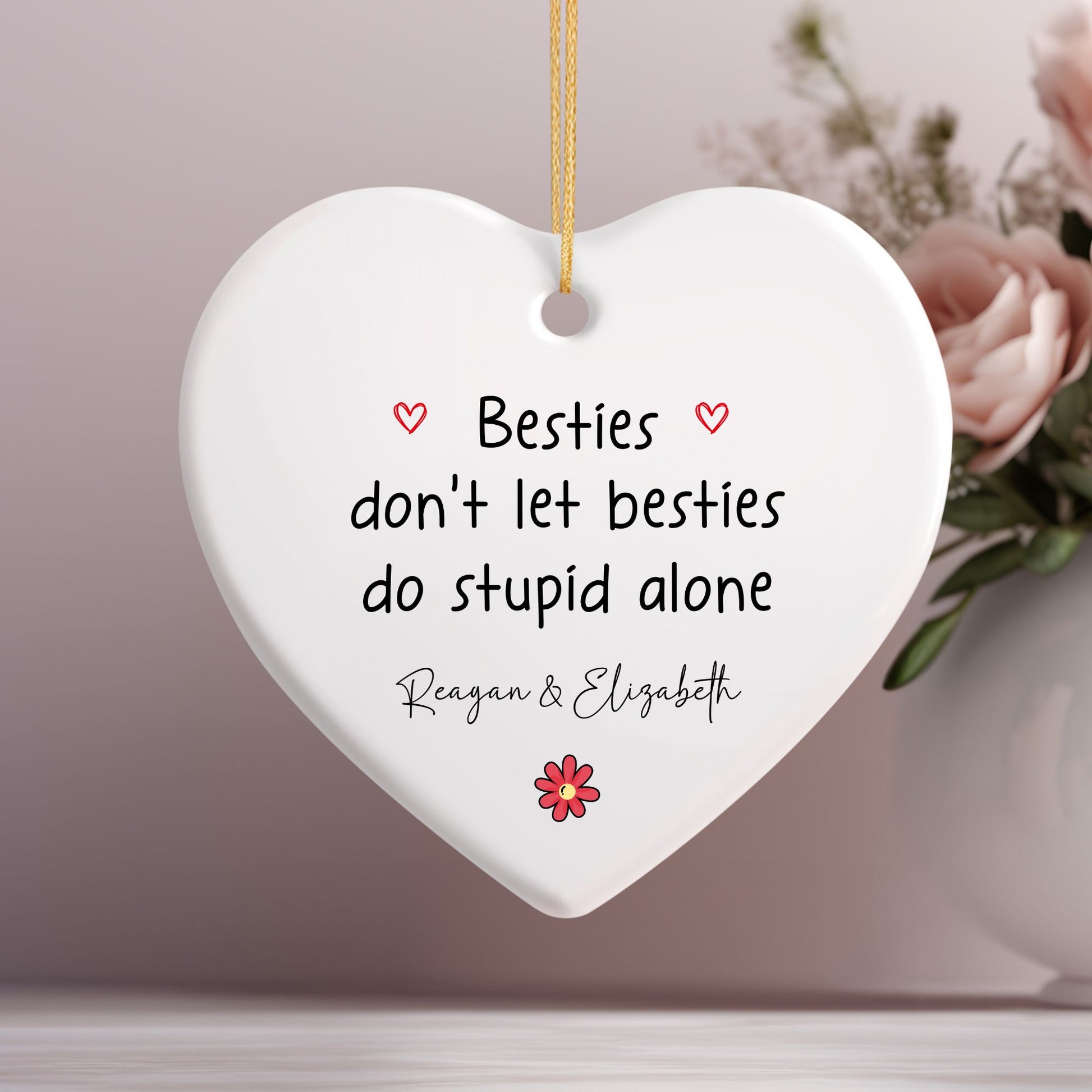 Who needs a crown when you’ve got an ornament that screams “I put up with you and still love you”? This ceramic heart is the ultimate proof that your friendship is equal parts love and sarcasm. Hang it up, laugh it off, and remind your bestie they’re stuck with you forever.