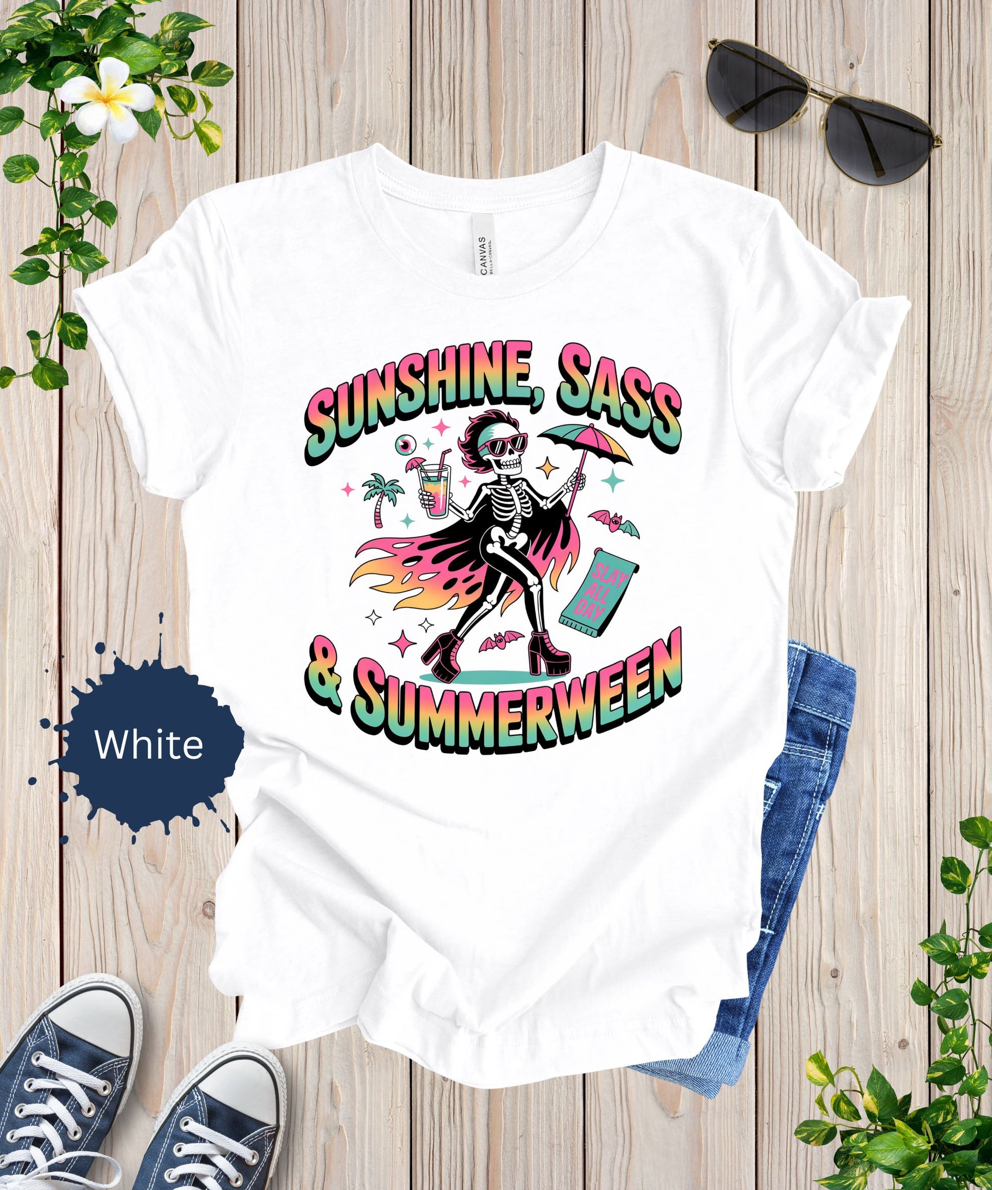 Turn up the sunshine and the attitude — this tee brings all the sass with a side of Summerween magic. Big vibes only.
