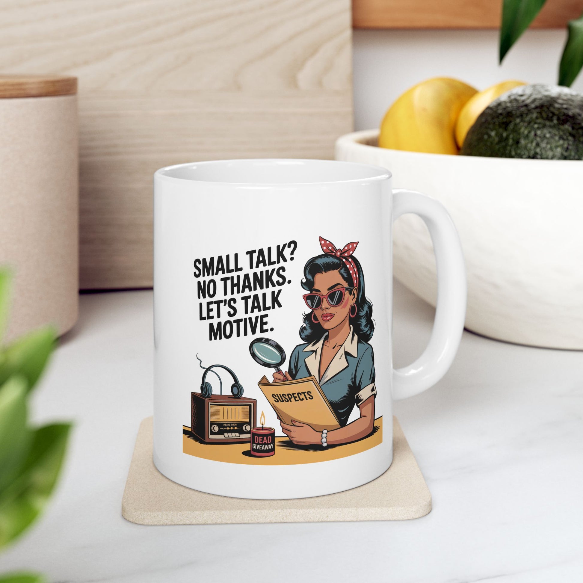 Fuel your obsession one sip at a time. This funny true crime mug is perfect for crime show marathons, murder podcast mornings, and gifting to the sarcastic sleuth in your life.