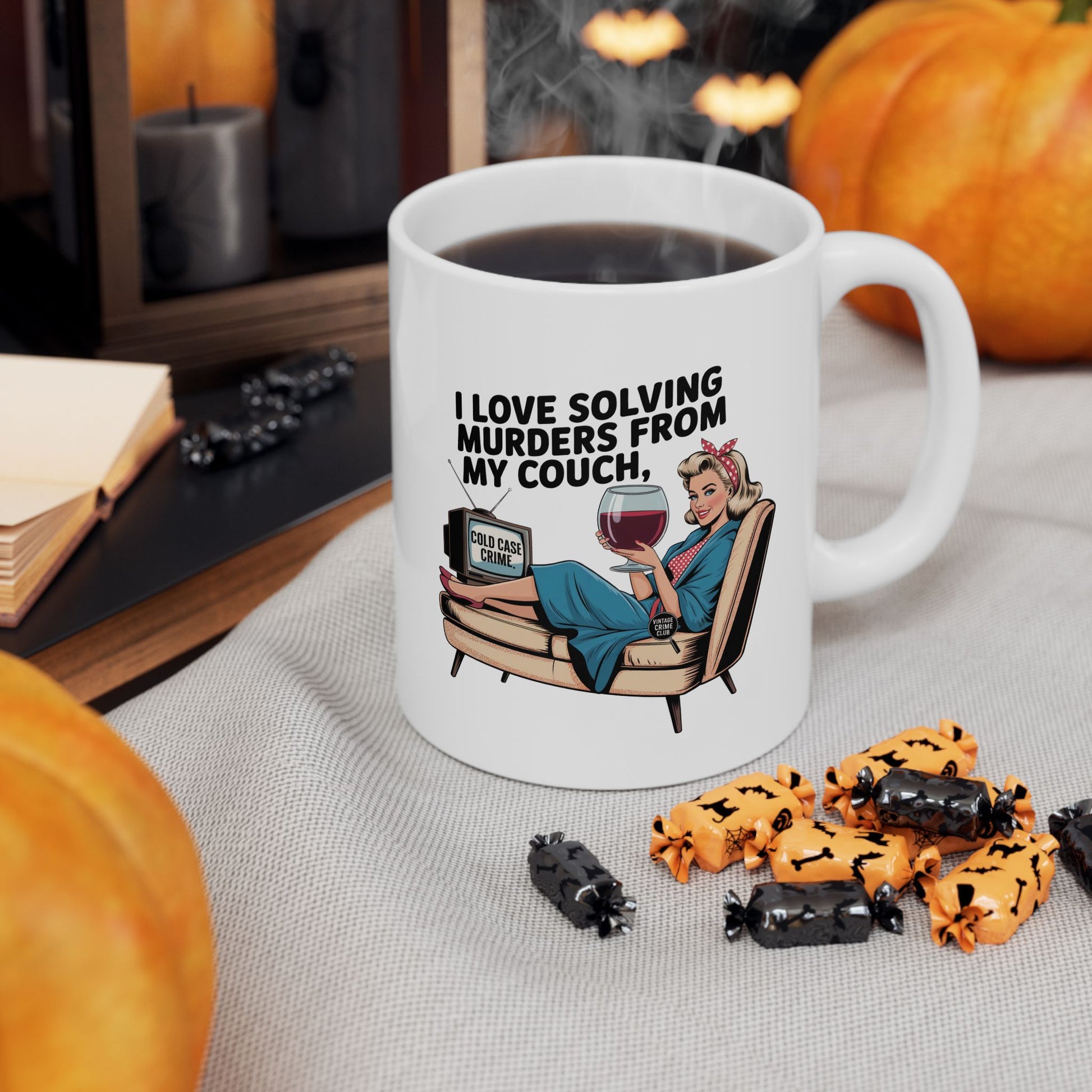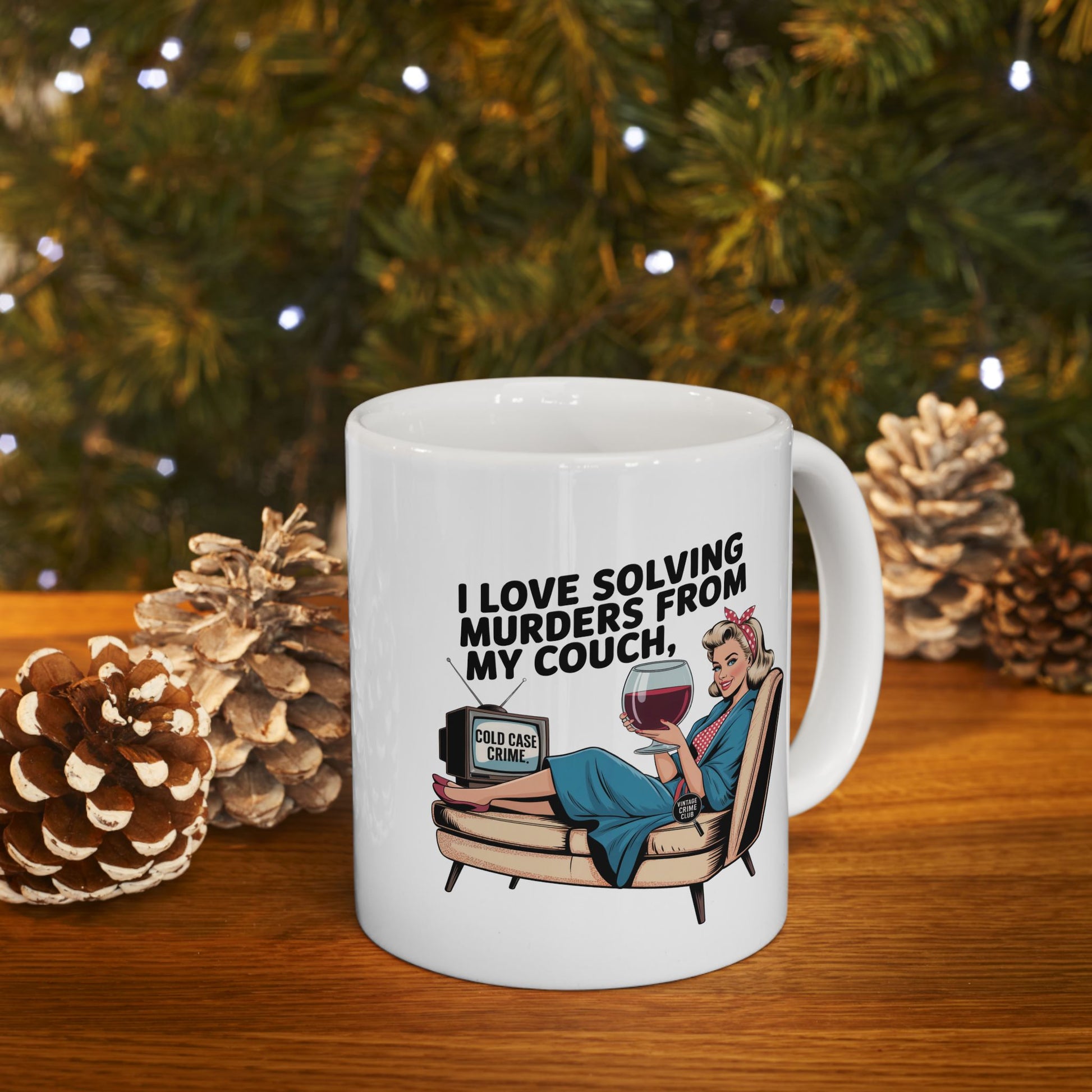Obsessed with murder and mid-century vibes? This retro true crime mug brings vintage flair to your caffeine fix—perfect for crime junkies who love their coffee with a side of suspense. Use it for coffee, tea, wine... or as an alibi.