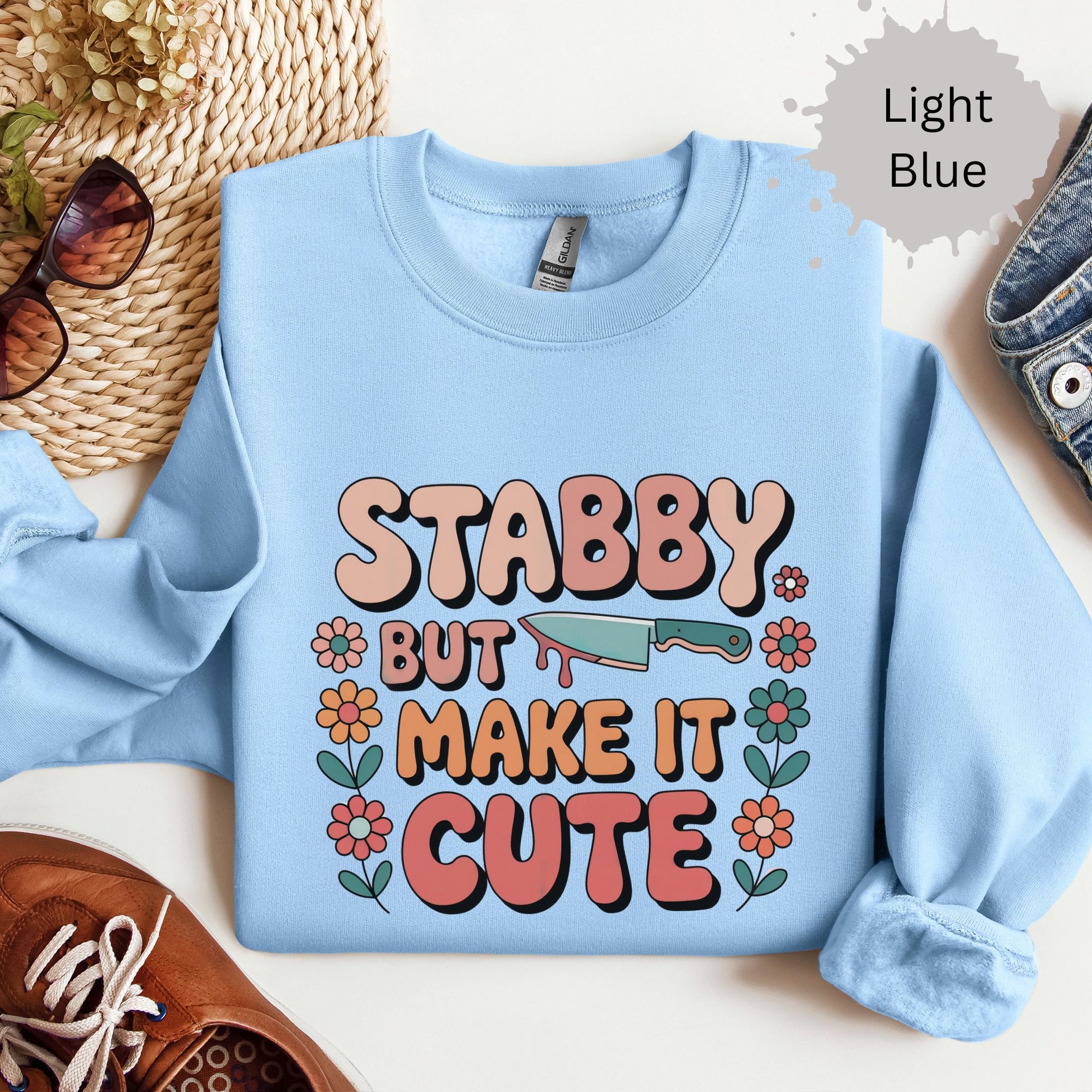 It’s giving “don’t test me, I’ve watched documentaries.” This “Stabby but make it cute” sweatshirt blends soft pastel charm with just the right amount of chaos. Whether you're pairing it with wine and true crime or just warning people with your wardrobe, this cotton-blend crewneck is cozy, creepy, and totally unbothered.