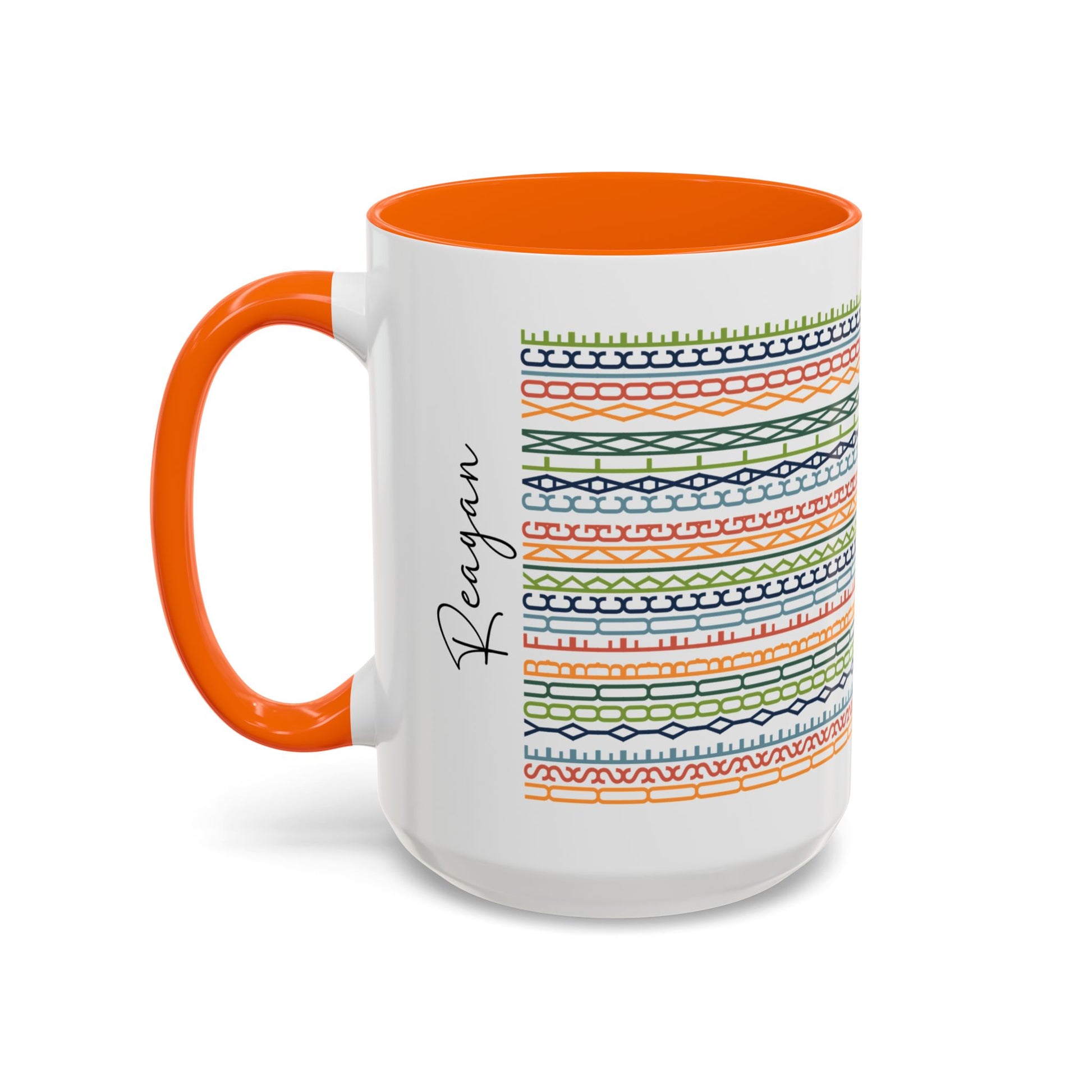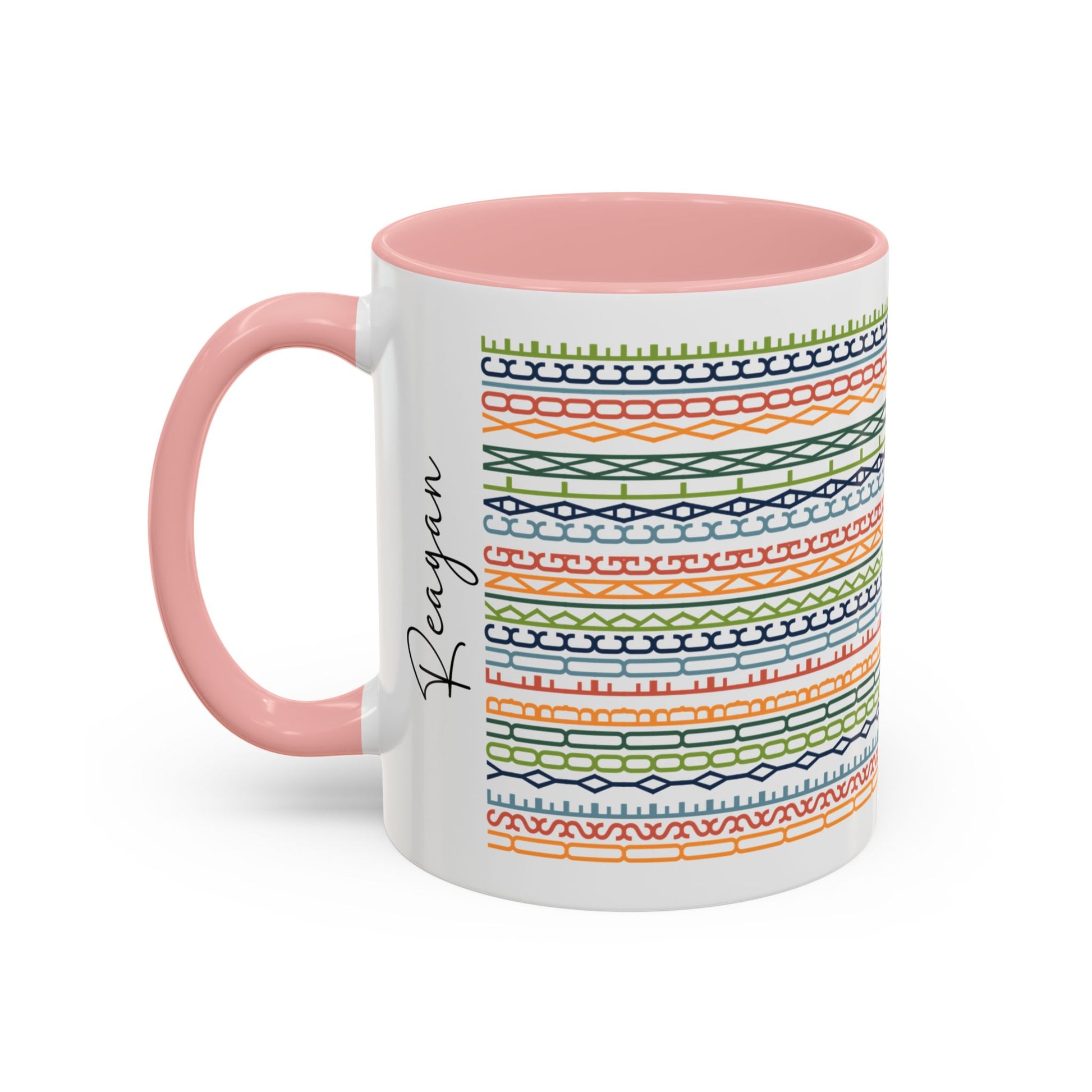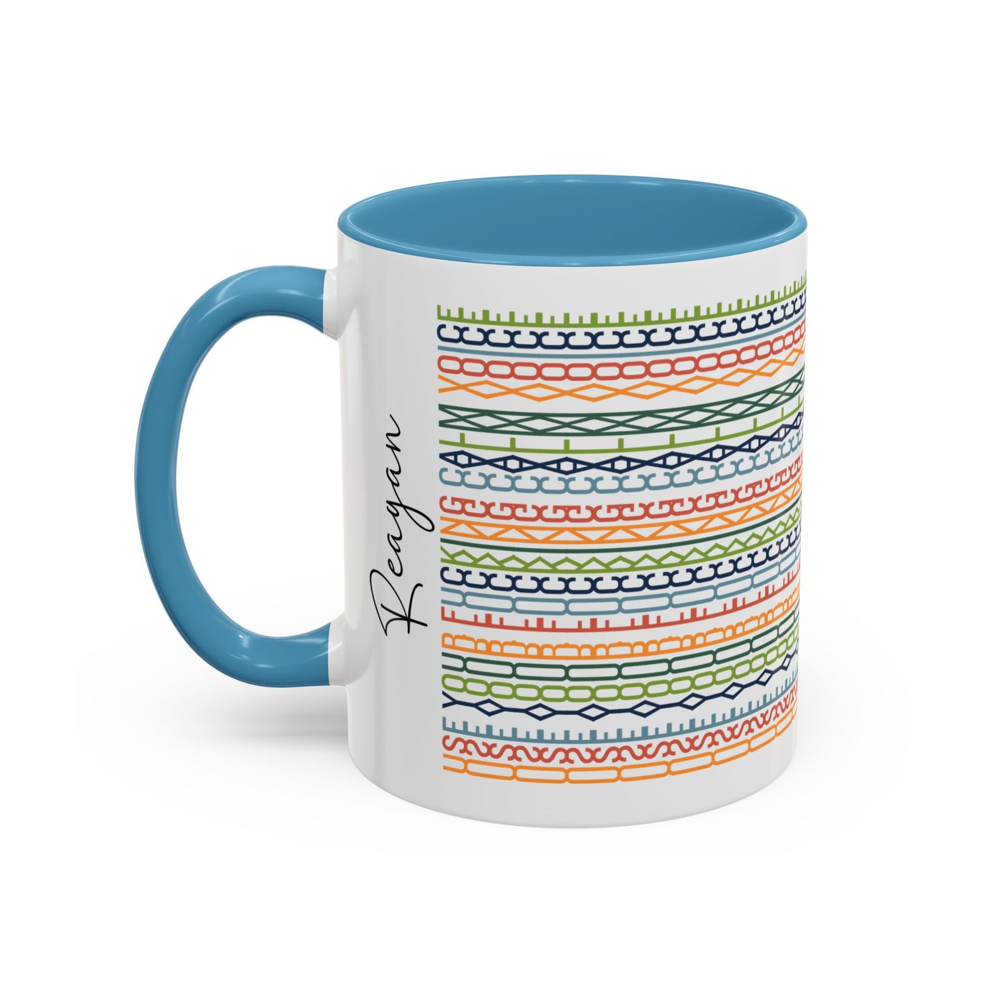 • Material: white ceramic with colored interior, rim and handle