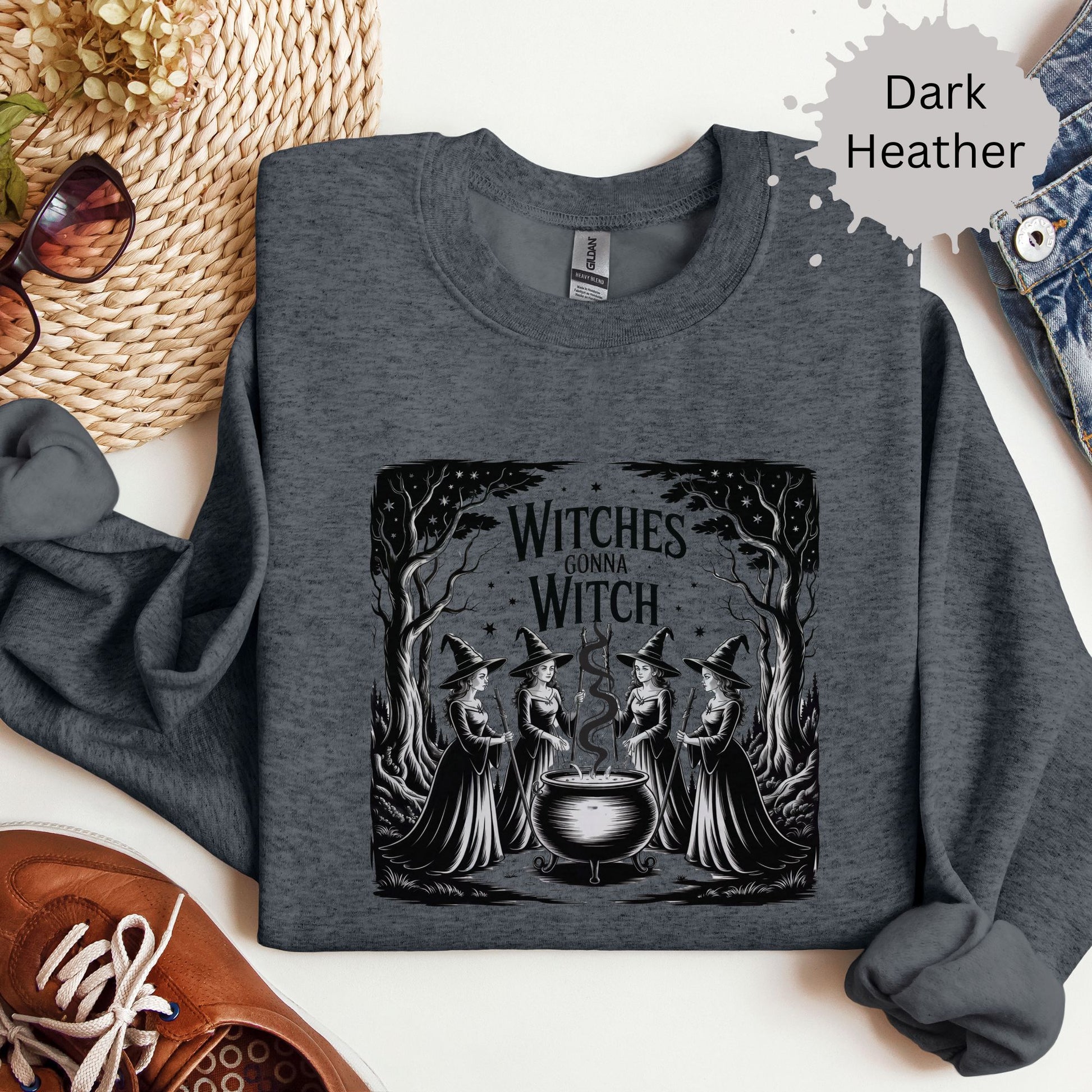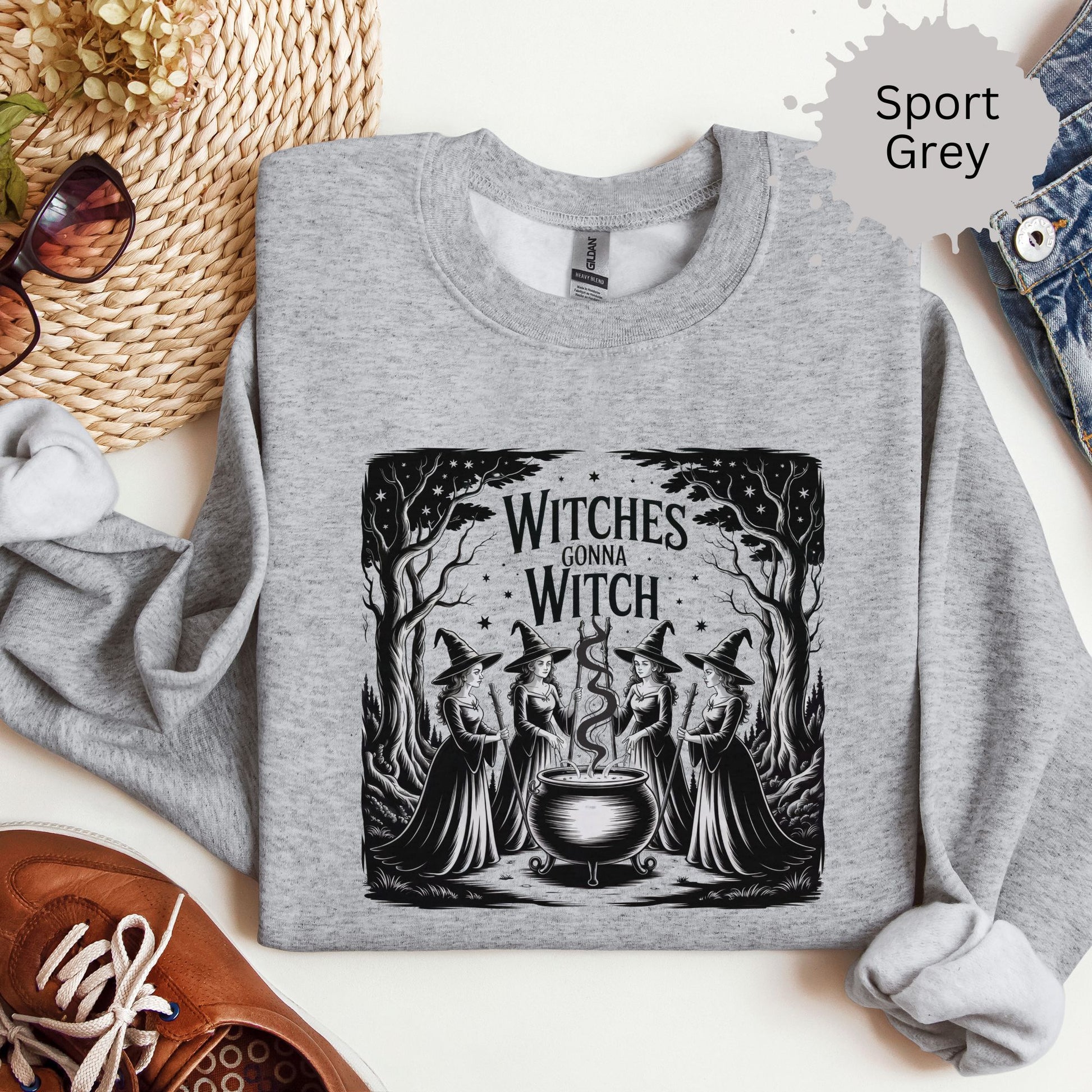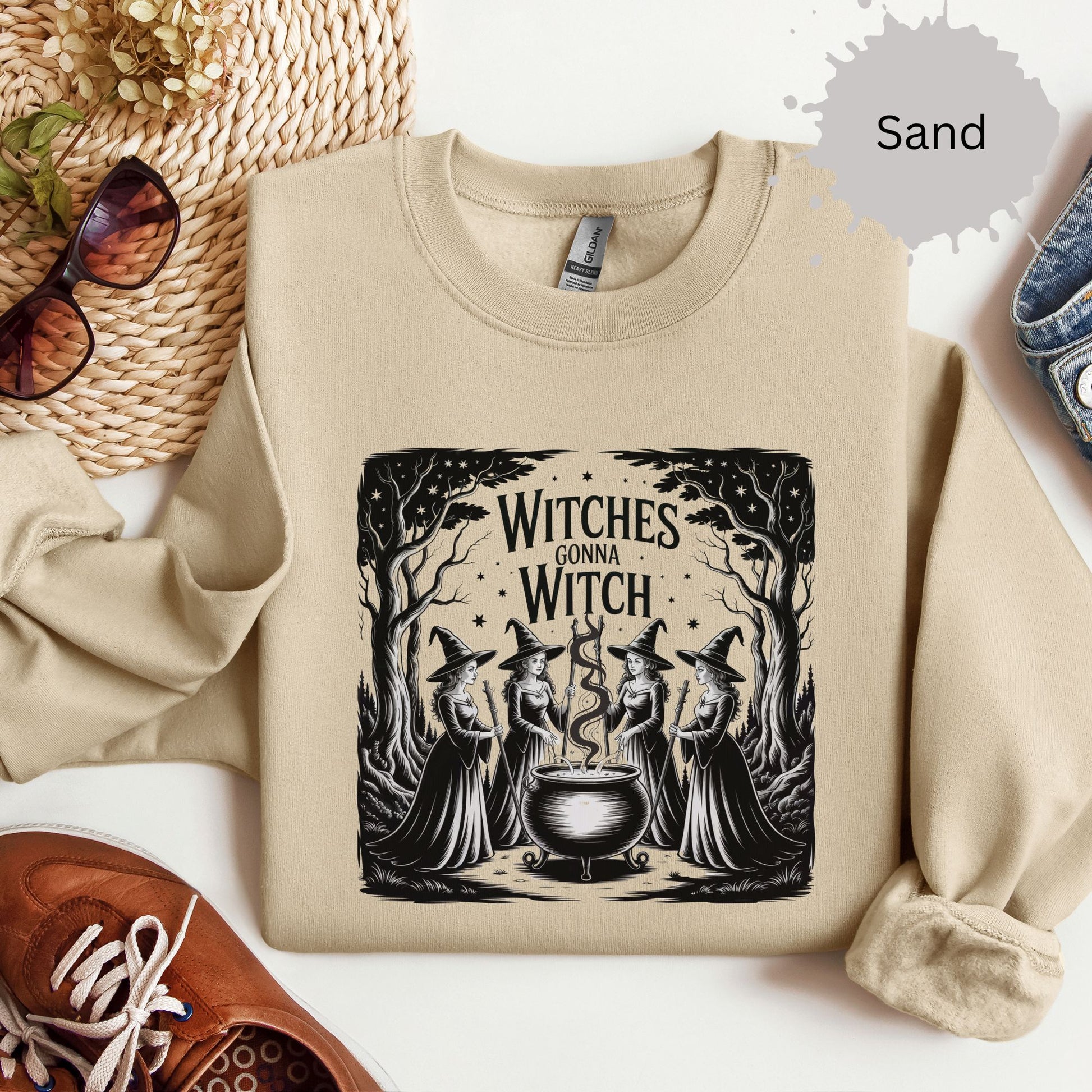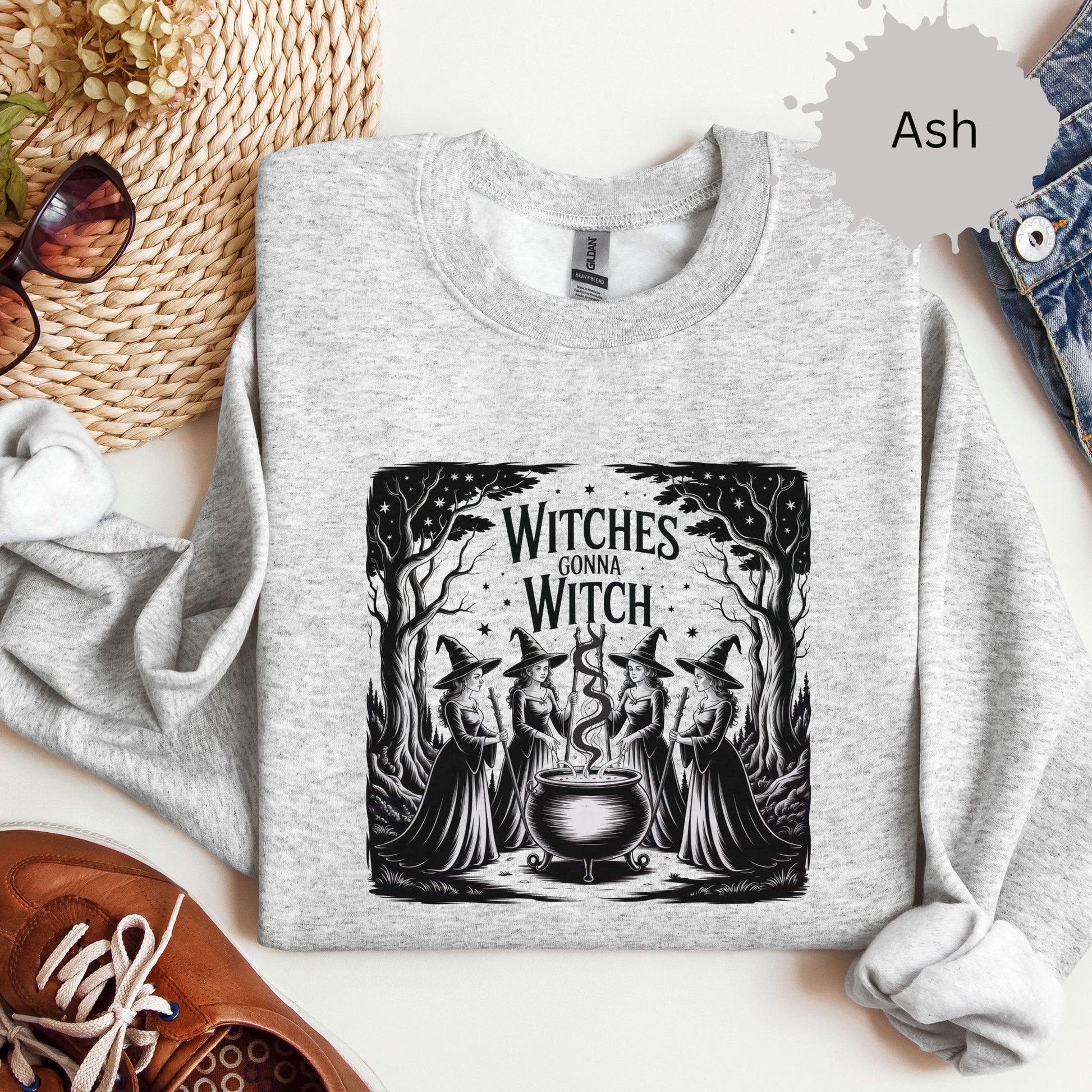 Bring the sass this spooky season with our “Witches Gonna Witch” pullover, crewneck sweatshirt—perfect for the sarcastic soul who’s got a little spell in her step. This vintage-style Halloween crewneck blends witchy vibes with girl gang energy for a cozy, bold look you’ll want to rock all fall.