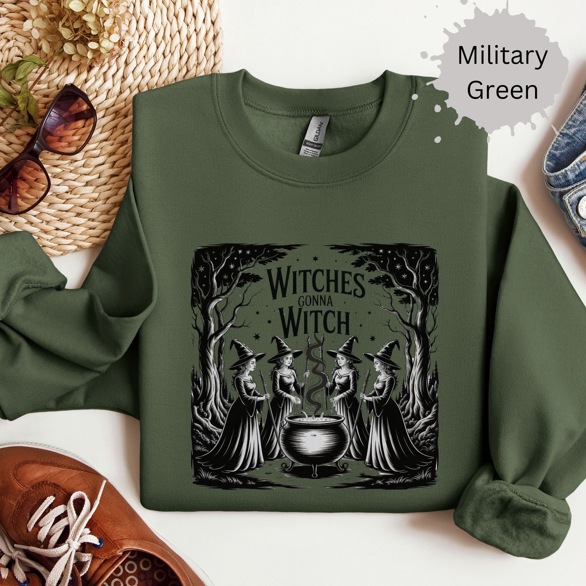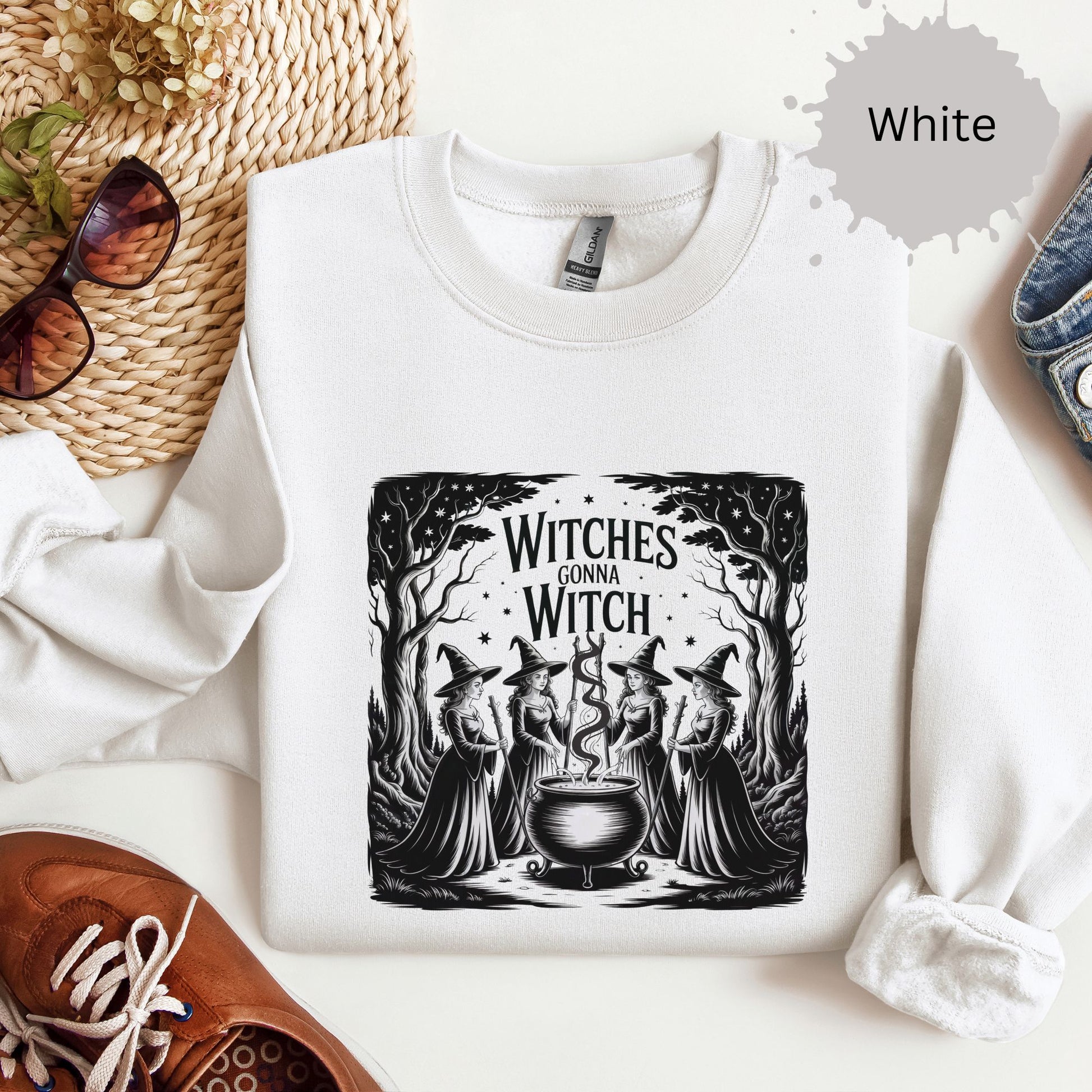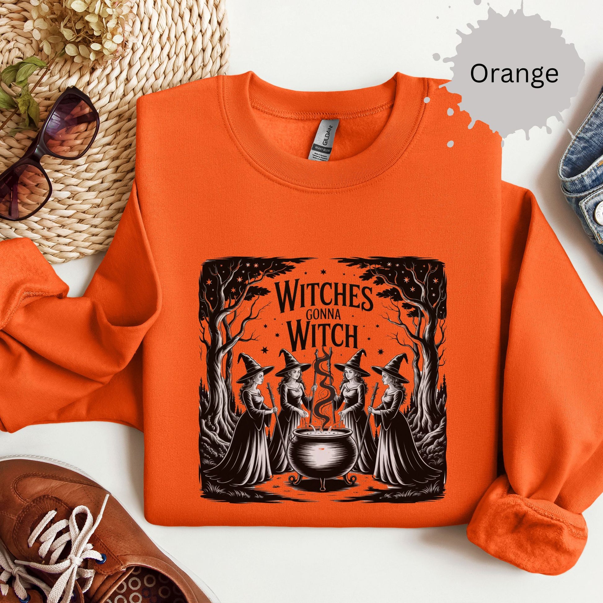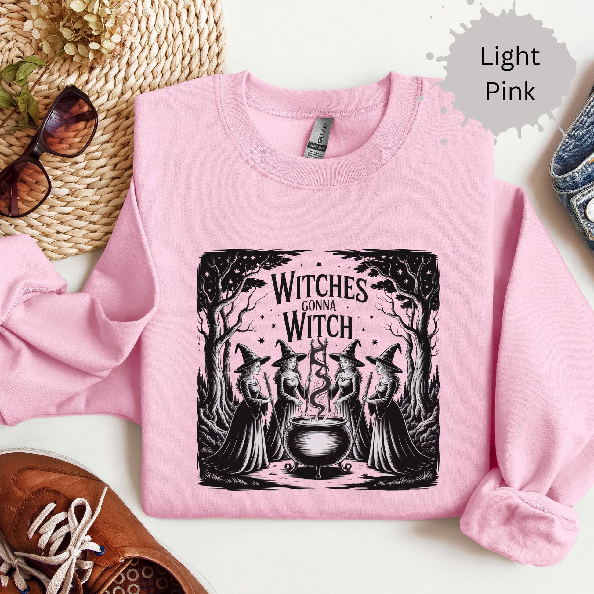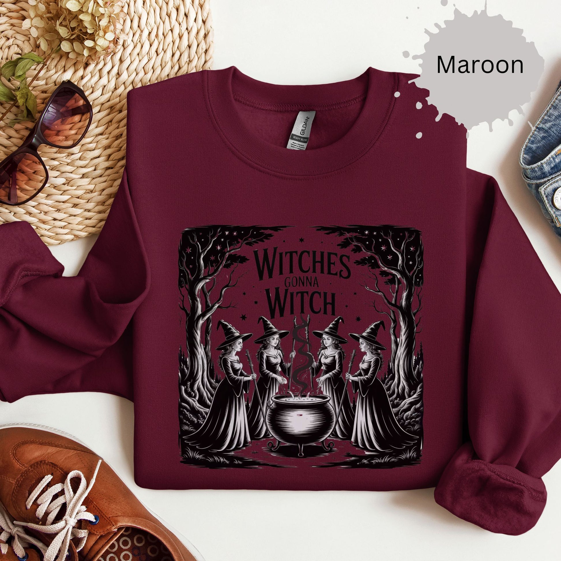 Bring the sass this spooky season with our “Witches Gonna Witch” pullover, crewneck sweatshirt—perfect for the sarcastic soul who’s got a little spell in her step. This vintage-style Halloween crewneck blends witchy vibes with girl gang energy for a cozy, bold look you’ll want to rock all fall.